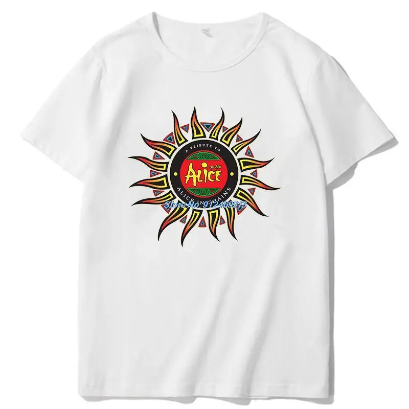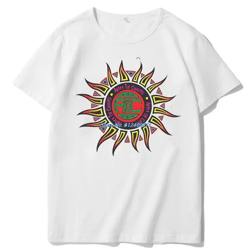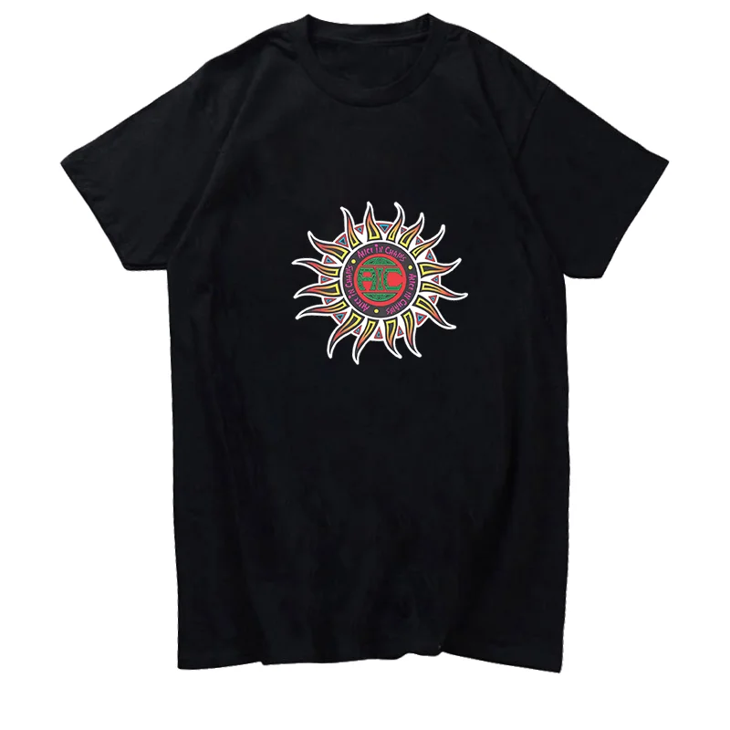Футболка мужская оверсайз с принтом Алиса в цепочках и логотипом солнца