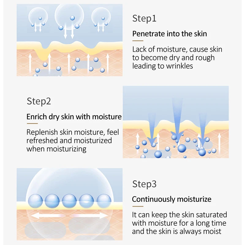 Глубоко в нижний слой, чтобы питатьПроникает в кожуОтсутствие влаги, вызывает сухость и шероховатость кожи, приводит к появлению морщинОбогатить сухую кожу влагойУвлажняет кожу, увлажняет и увлажняетНепрерывно увлажняетОн может удерживать кожу, насыщенную влагой в течение длительного времени, и кожа всегда влажная