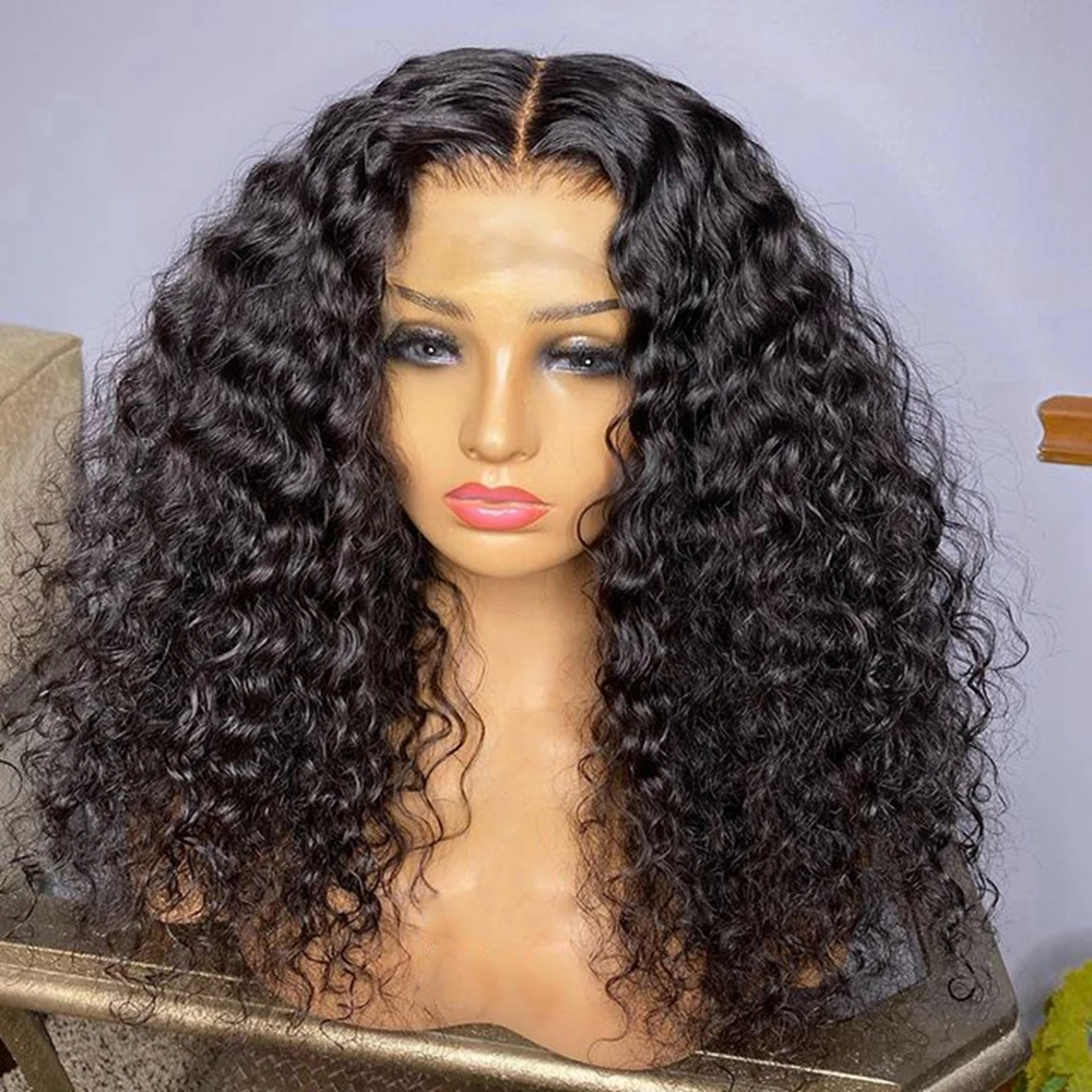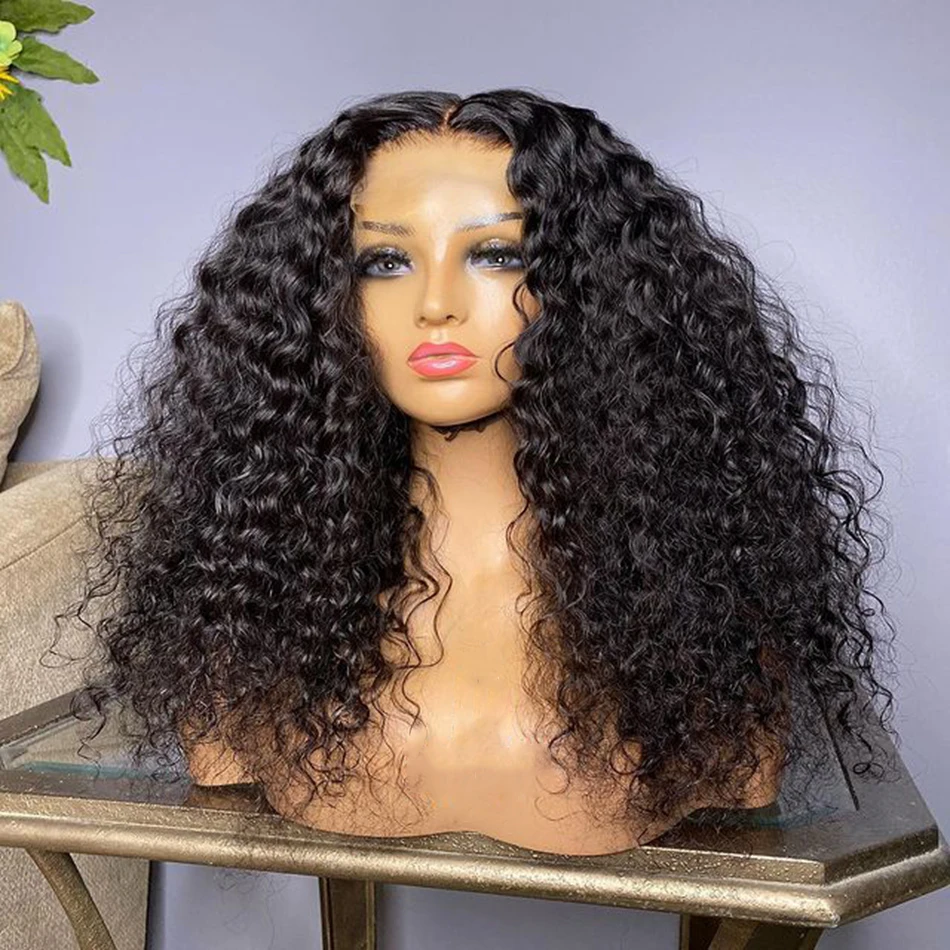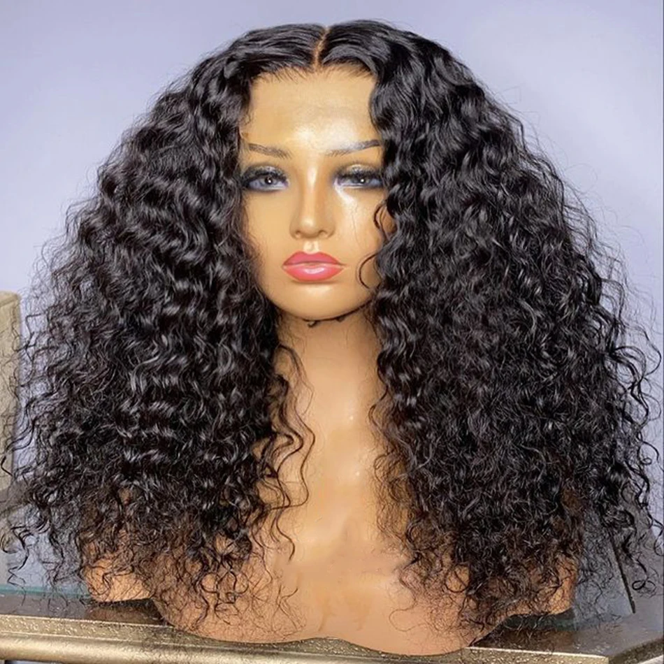 Парик черный кудрявый из синтетического кружева спереди, термостойк...