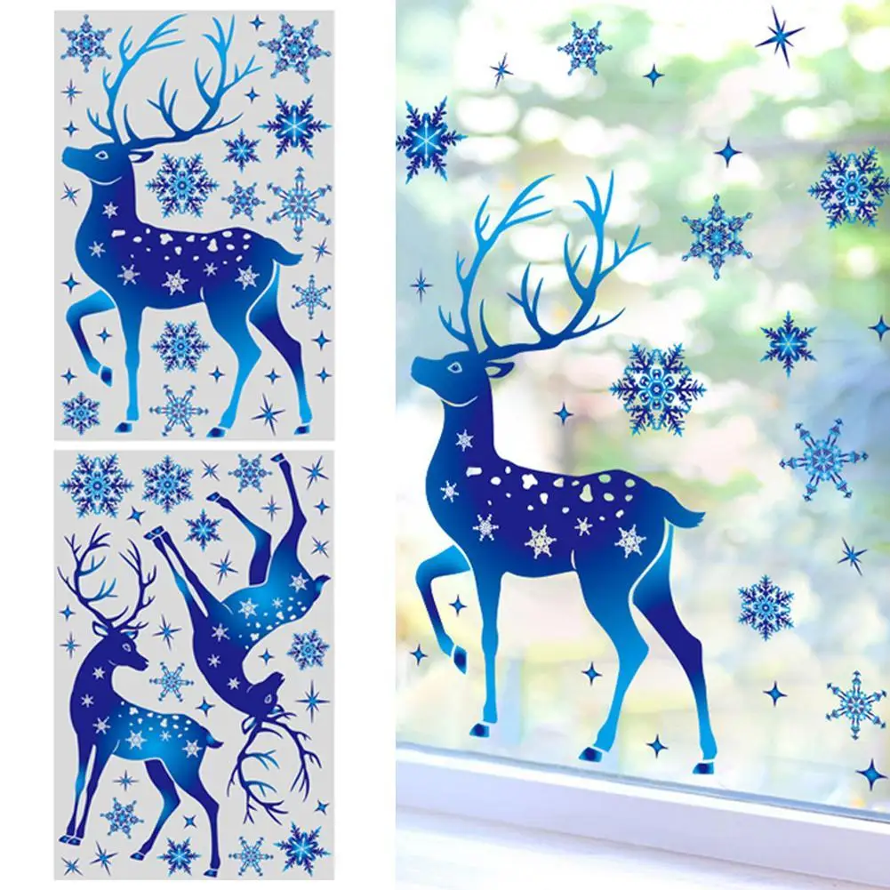 Рождественские наклейки на окно с голубыми оленями и снежинками, зи...