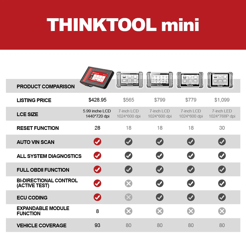 Thinktool mini, как диагностическое устройство OBD II высшего уровня для пользователей DIY, поддерживаемое, включает считывание кода/очистку потока данных, испытание на приведение в действие, специальные функции и т. д.