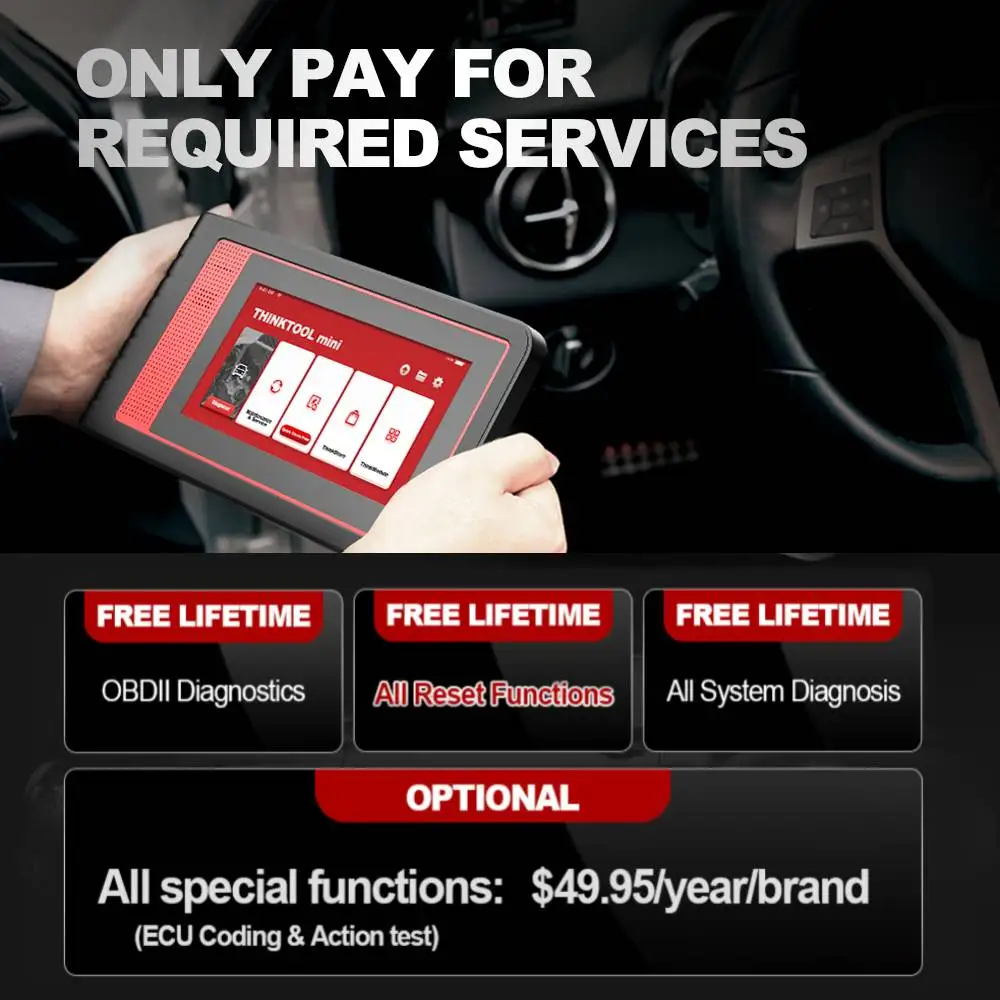 11.Оплатите один автомобиль модель программного обеспечения может наслаждаться бесплатным обновлением 1 год полной системы, такие как: ECU кодирование/экшен тест и другие специальные функции стоимость: $49,95/год (вы можете купить напрямую в магазине ThinkCar)