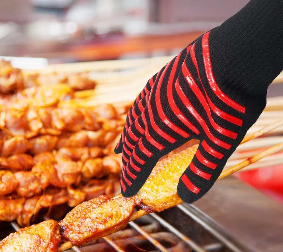 Перчатки для барбекю, 500 градусов, термостойкие перчатки для духовки, огнеупорные перчатки для барбекю с теплоизоляцией, перчатки для микроволновой печи