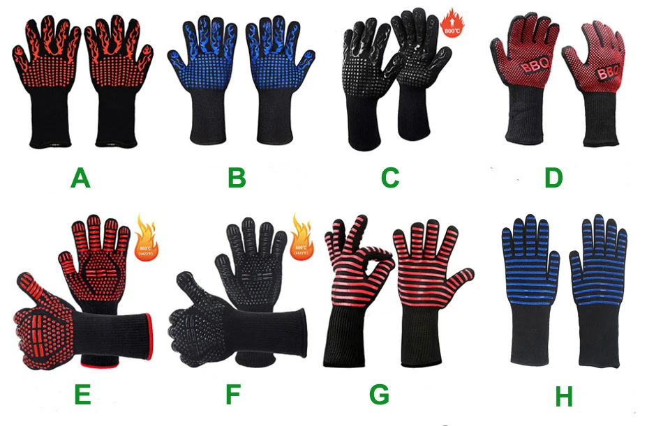 Перчатки для барбекю, термостойкие рукавицы для печи 500 800 градусов, огнеупорные перчатки для барбекю, теплоизоляционные перчатки для микроволновой печи