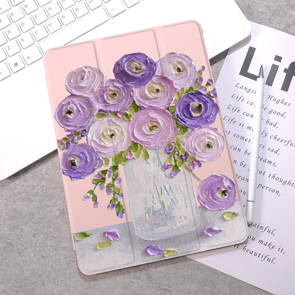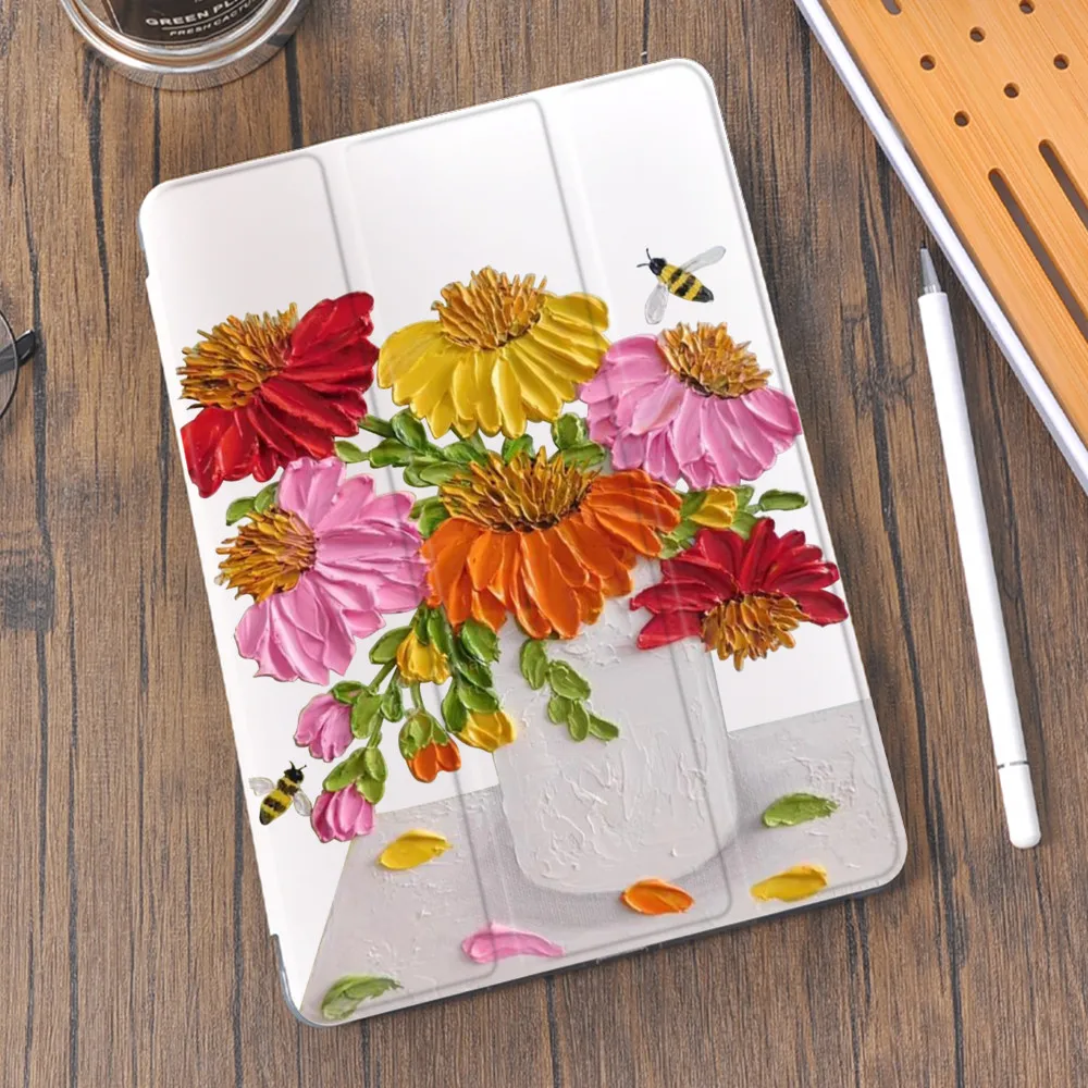 Чехол с цветочным рисунком маслом для Air 4 10,2 iPad 8-го поколения 2020 Pro 11 2021 держатель 7 симпатичный чехол Мини 5 Air 2 6-й чехол