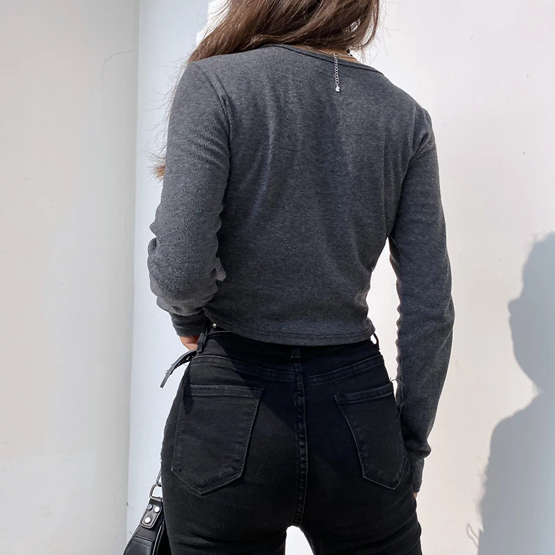 Женский укороченный топ Y2k с длинным рукавом, винтажная Повседневн...