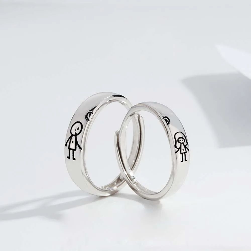 Мультяшный мальчик и девочка гравировка обещание соответствие обручальное кольцо для пары подарок на день Святого Валентина
