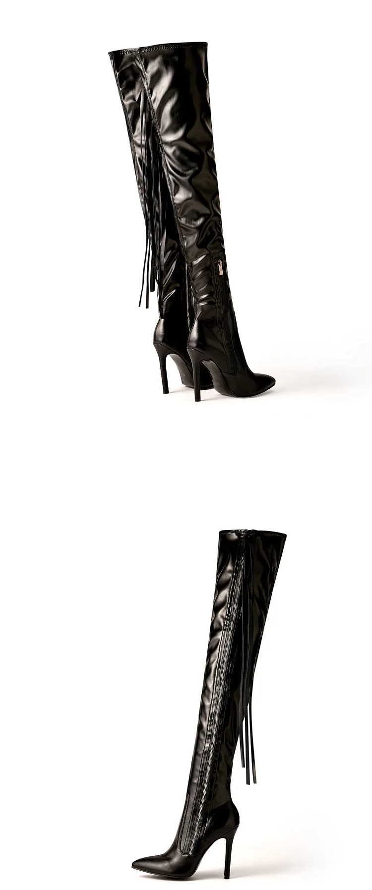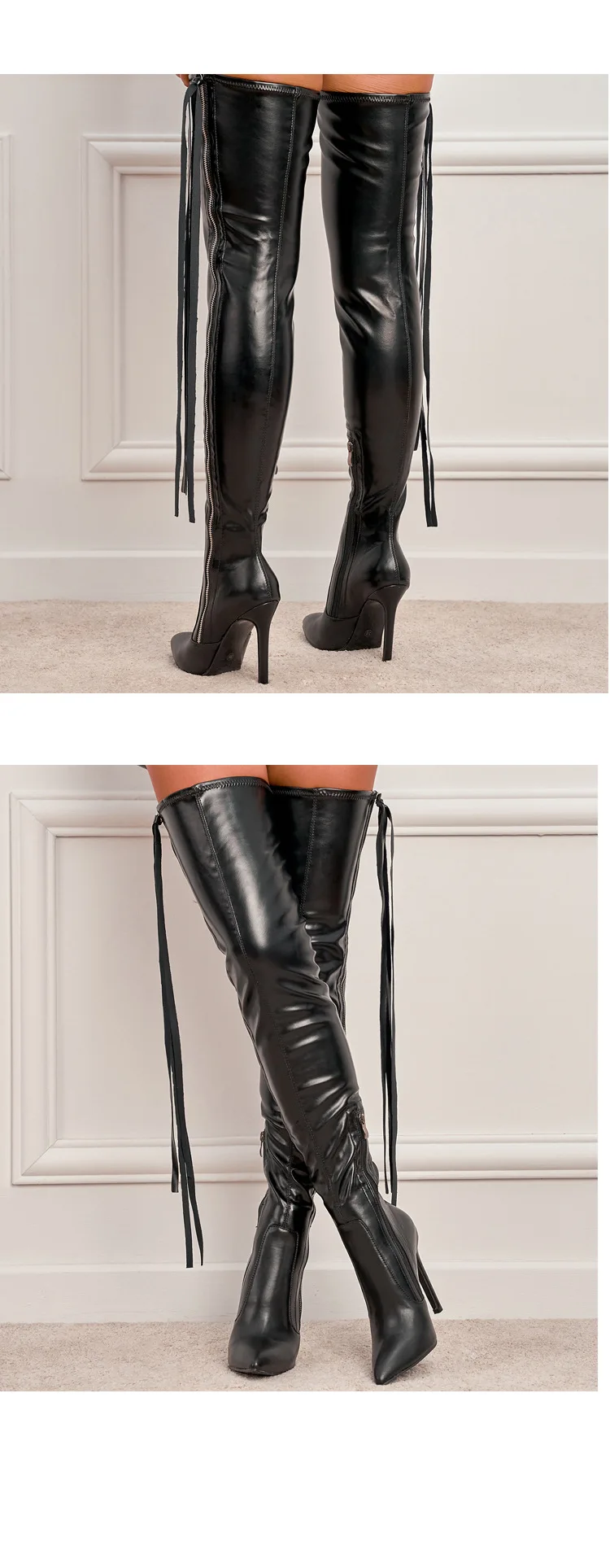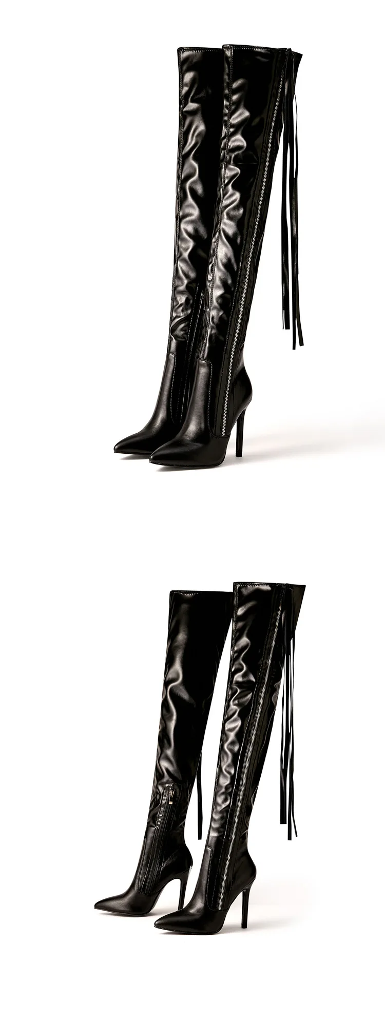 Модные Современные женские высокие сапоги до бедра с острым носком, женские привлекательные Сапоги выше колена на тонком каблуке для девочек, женская обувь, длинные сапоги