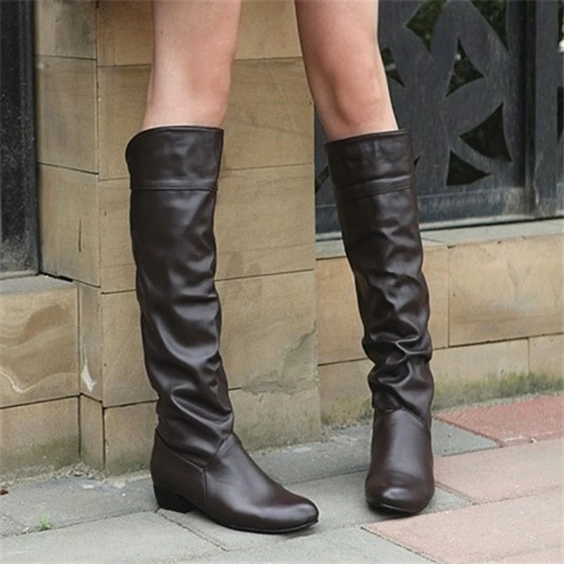 Женские сапоги теплые осенне-зимние до колена Элегантные Высокие сапоги черные коричневые рыцарские сапоги на высоком каблуке модные повседневные женские сапоги