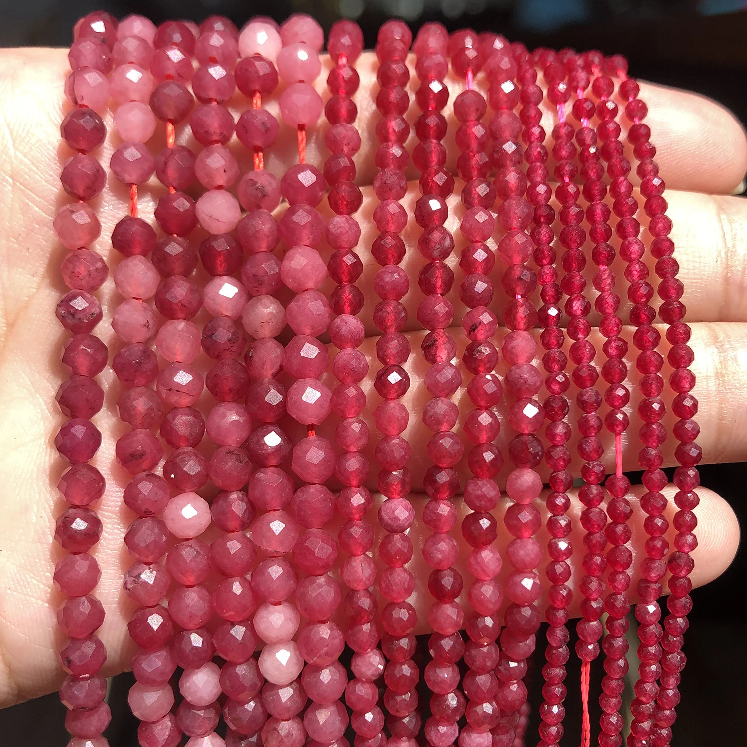 Оптовая продажа, 2 3 4 мм, крошечные бусины из драгоценных камней, блестящие маленькие граненые бусины из красного рубина для изготовления ювелирных изделий из бисера