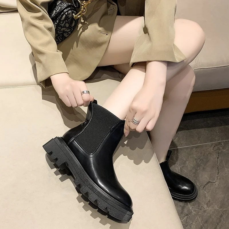 chelsea boots women thick sole soild colwomen ankle boots chelsea short boots