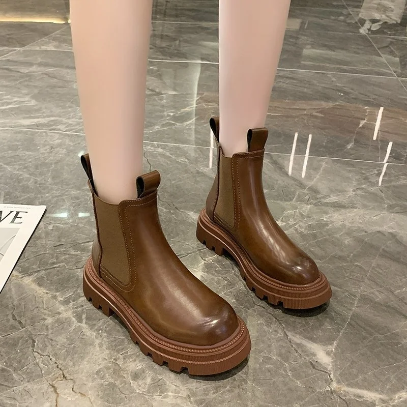 Женские ботинки челси на платформе, коричневые, черные, бежевые, бе...