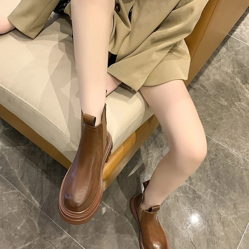 Ботинки женские кожаные, на плотной подошве, для весны и зимы, 2021