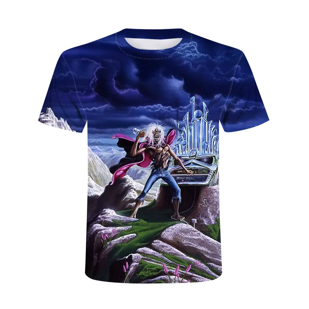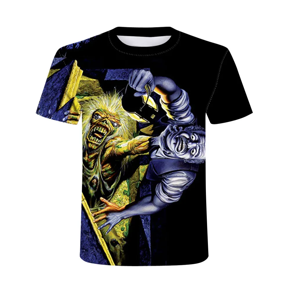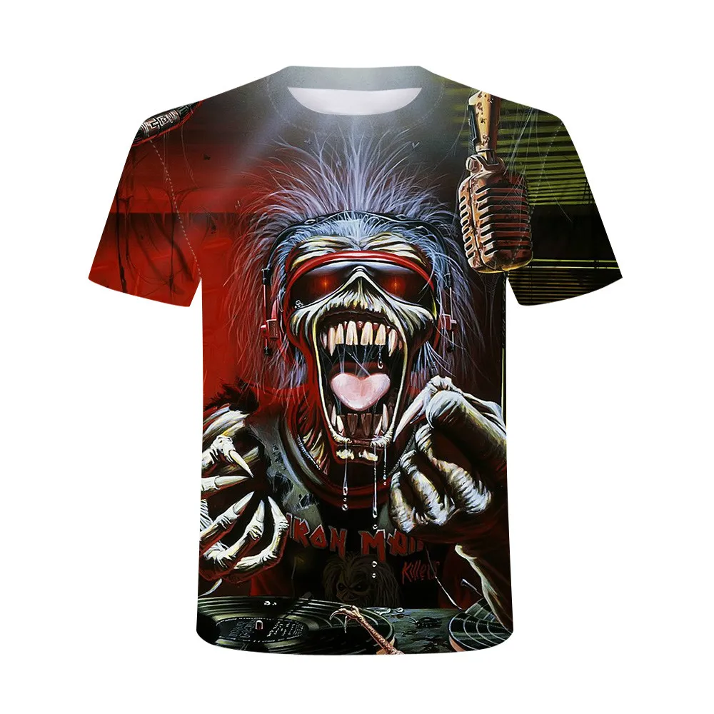 Футболка с 3D-принтом в виде тяжелых металлических скелета для мальчиков, модная повседневная рубашка в стиле рок-фестиваля, с круглым вырезом, в стиле хип-хоп, с коротким рукавом, летняя детская искусственная кофта