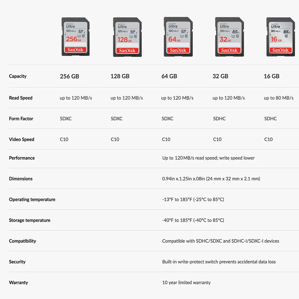 SanDisk Карта памяти SDHCSDXC, класс 10, 128 ГБ, 256 ГБ, 120 ГБ