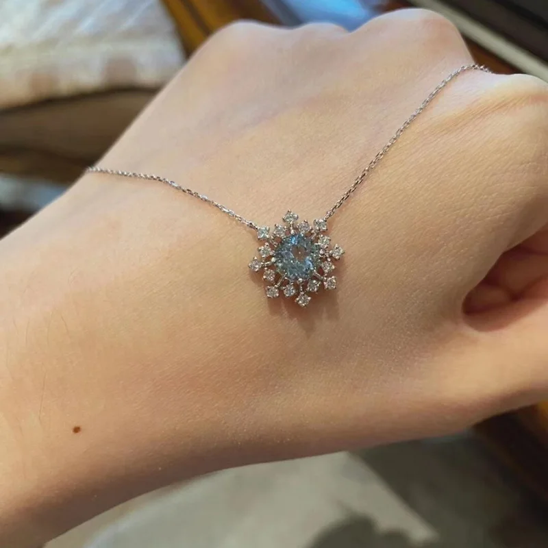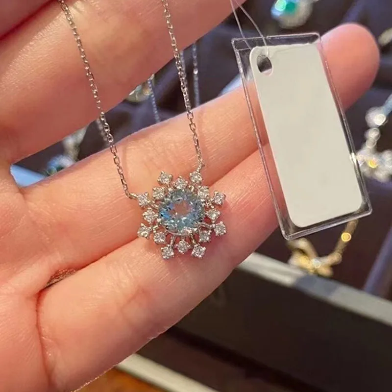 Женское ожерелье с подвеской-снежинкой, серебряное ожерелье с цирконом