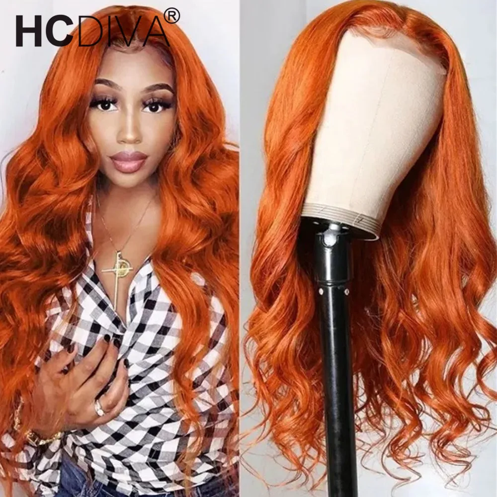 Имбирный оранжевый парик средней части из человеческих волос с кружевной передней частью для черных женщин, предварительно выщипанные длинные бразильские человеческие волосы Remy