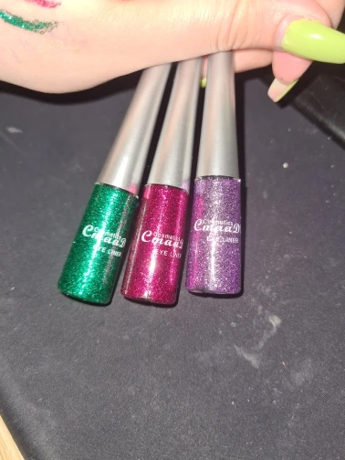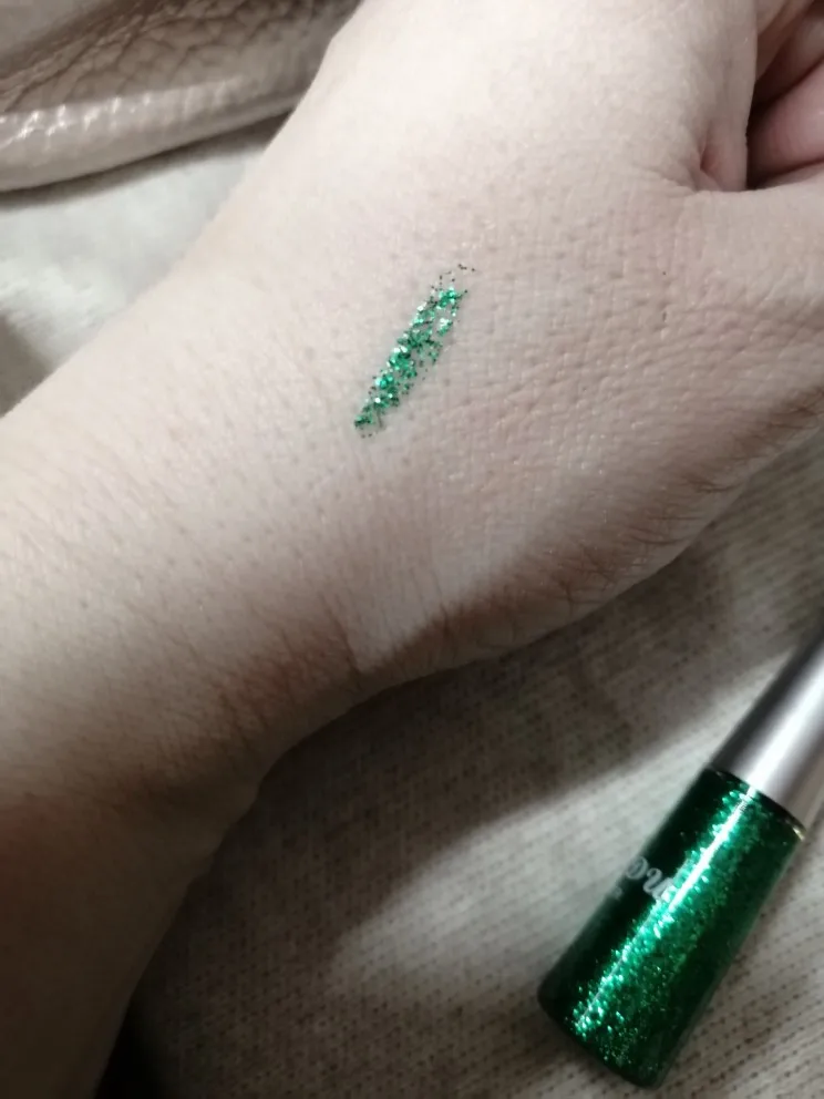по факту полупрозрачная жижица с блестками. осыпается, но если нанести как стрелку прямо над ресничным рядом, хрен сотрешь (особенно на нарощенных), стойкость на двоечку. может на белой или черной подложке будет красиво, но у меня на красной выглядело как засохшие слезы по веку.