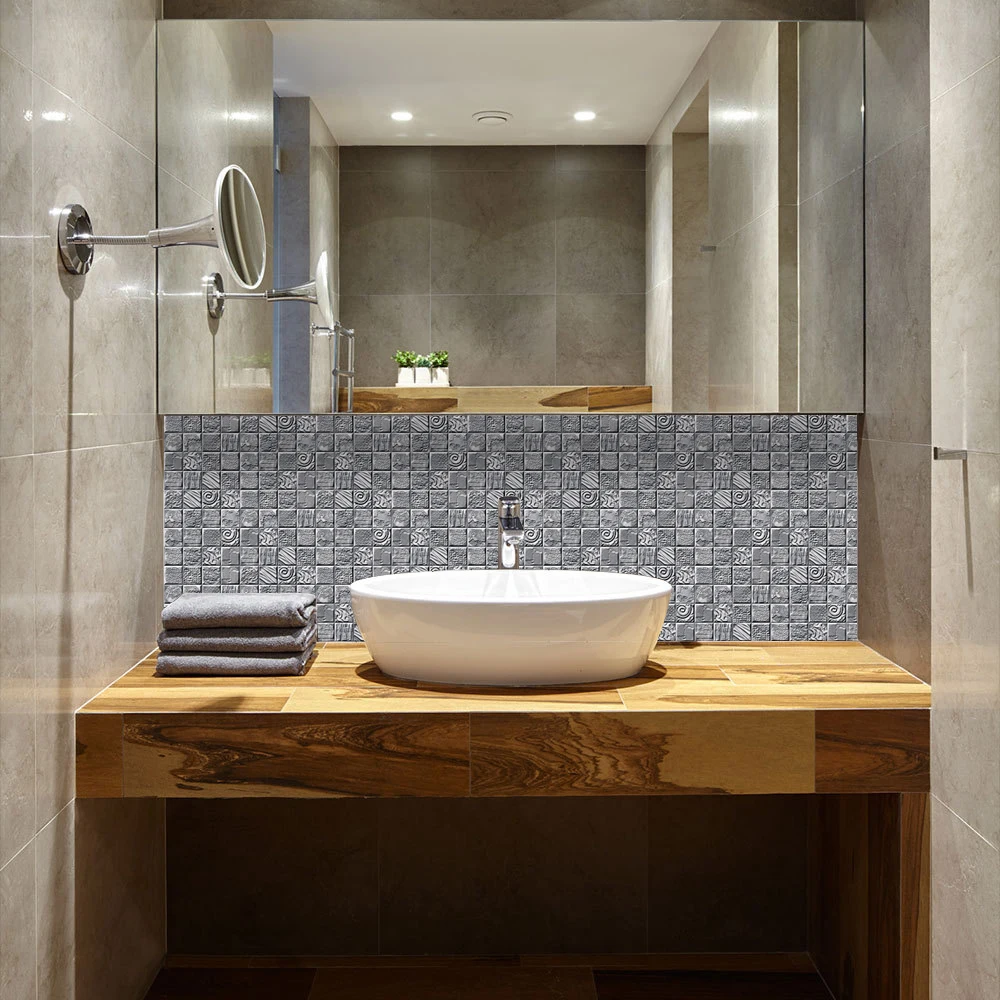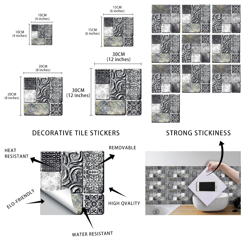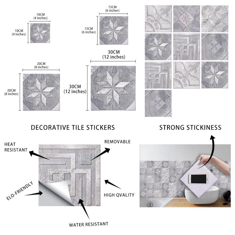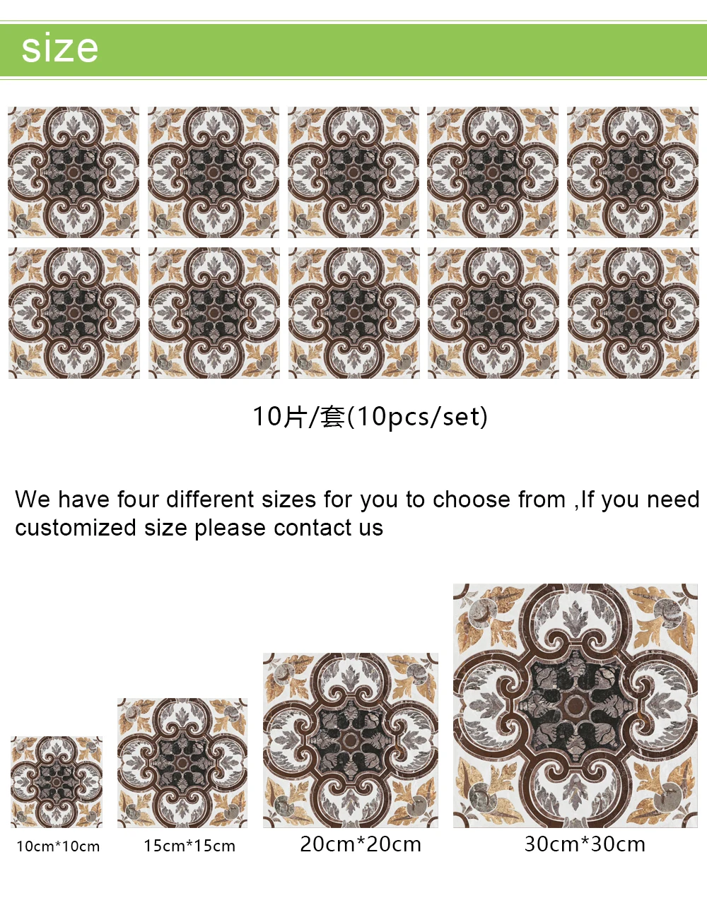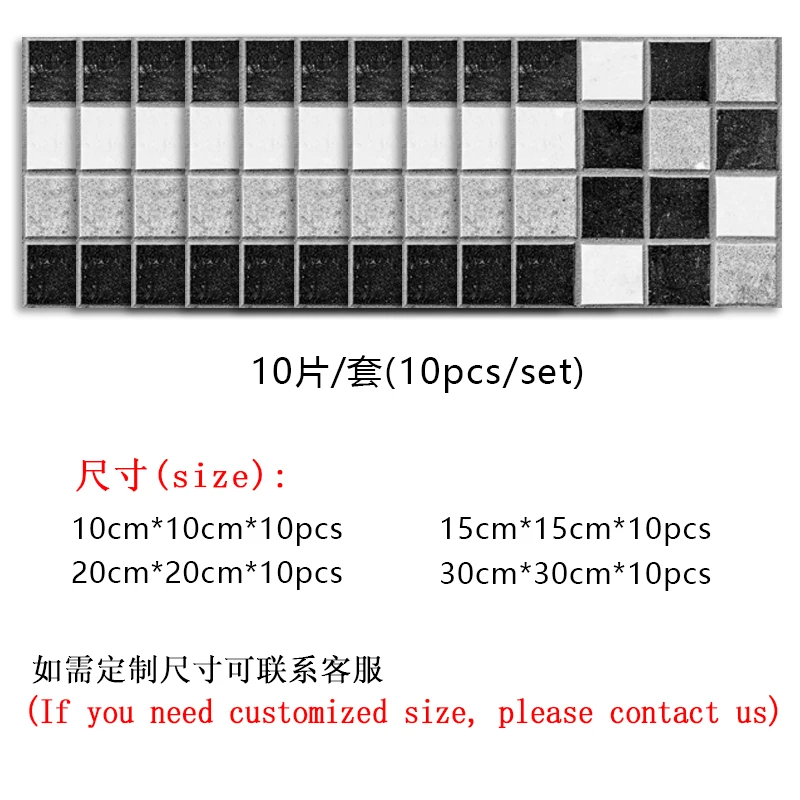 Размер продукта: 10cmX10cmX10pcs, 15cmX15cmX10pcs, 20cmX20cmX10pcs, 30cmX30cmX10pcs.Характеристика:1. Продукт изготовлен из безопасного, экологически чистого, нетоксичного ПВХ материала, поэтому вы можете использовать его с уверенностью.2. (1) на поверхности изделия имеется матовая пленка, которая является водонепроницаемой, маслостойкой, защищенной от брызг, нескользящей, износостойкой и т. д. Его можно использовать на полу, и использование швабры и меток не вызовет каких-либо повреждений. (2) Изделие поставляется с самоклеящейся тканью, на обратной стороне изделия имеется слой белой защитной бумаги, которую можно наклеить непосредственно после разрыва. Легко разбирается, не повреждая стену.3. Поверхность изделия покрыта защитной пленкой, которая будет более блестящей после разрыва.4. Этот продукт изготовлен из толстый материал толщиной около 0,35 мм. Легко устанавливается и может использоваться в качестве самостоятельного продукта.5. Когда продукт наклеен, его необходимо использовать на безпыльной, чистой и плоской поверхности.6. Продукт используется для учебы, спальни, ванной комнаты, кухни, пола, ТВ фоновой стены, потолка, пола, мебели, холодильника, стекла, талии, керамической плитки, саржевого украшения...