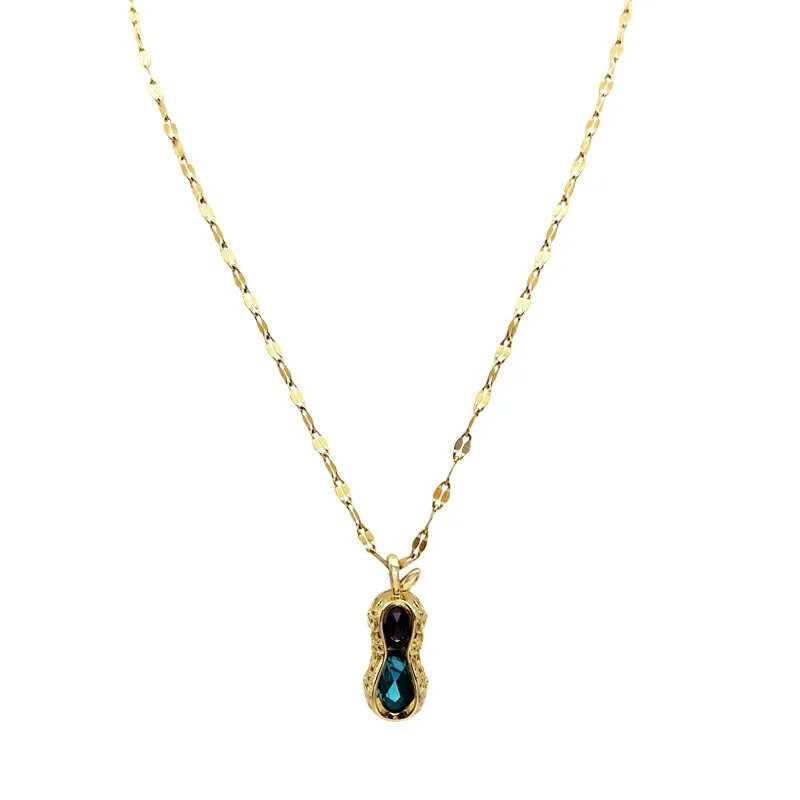 Винтаж золото Нержавеющаясталь оболочки Цветной Циркон рога ожерель...