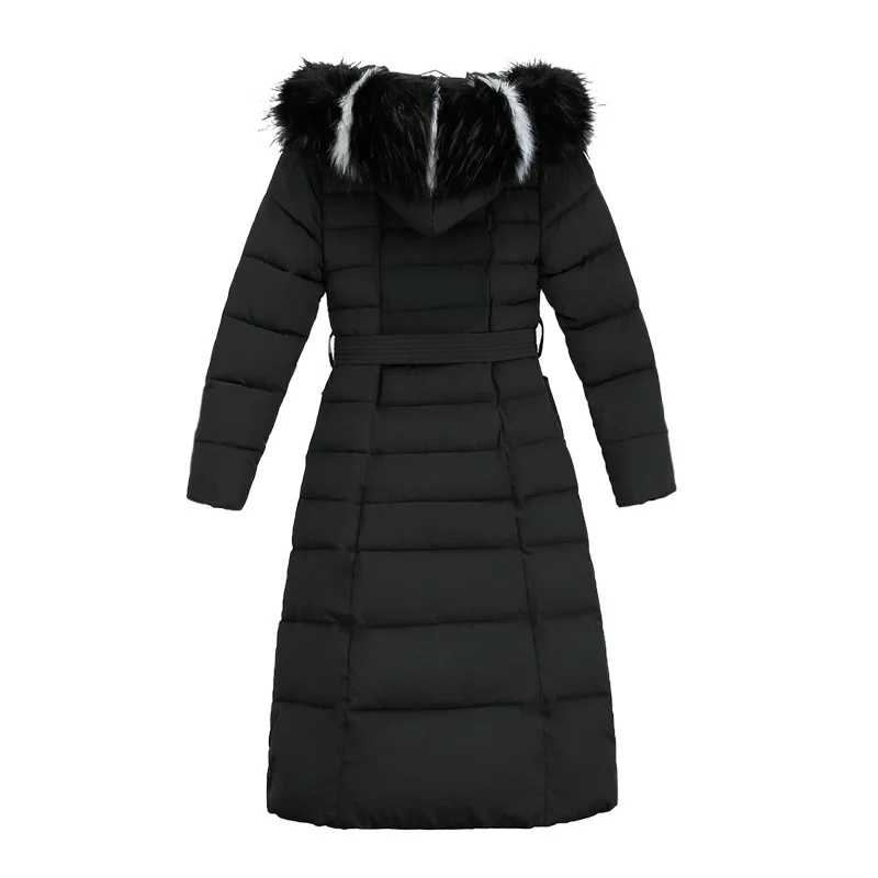 Зимняя Новинка 2021, длинная стеганая куртка, Женское пальто с большим меховым воротником, свободная стильная стеганая куртка с поясом, толстая пуховая стеганая куртка, стеганая куртка