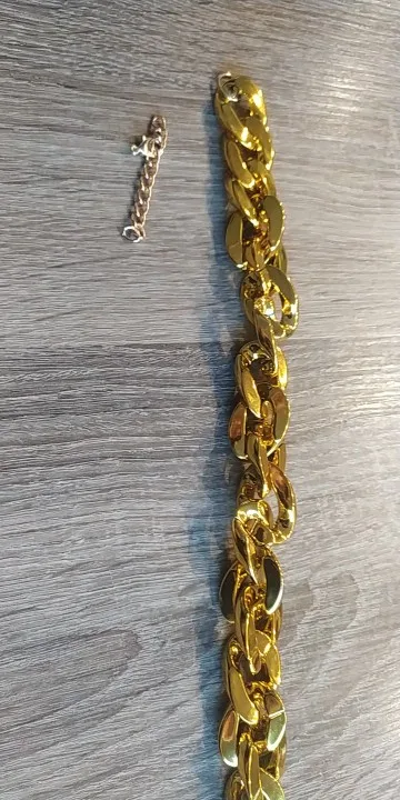 описания товара не было, выглядит как металлическая насамом деле крашенная пластиковая, цепь. Но доставкой доволен товар пришел быстро, к отправителю претензий нет
