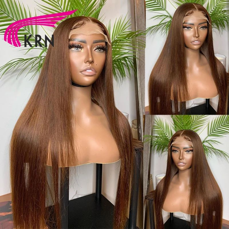 Парики прямые из натуральных человеческих волос коричневого цвета 1...