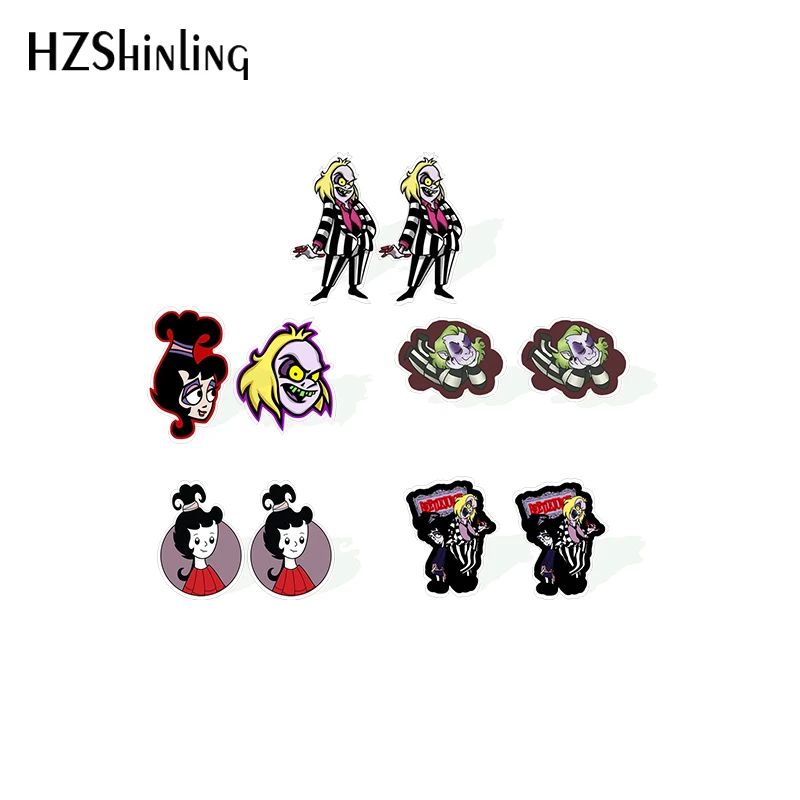 2021 Счастливого Хэллоуина художественные серьги-гвоздики из акриловой смолы с мультяшным рисунком Лидии, эпоксидные ушные украшения для девочек
