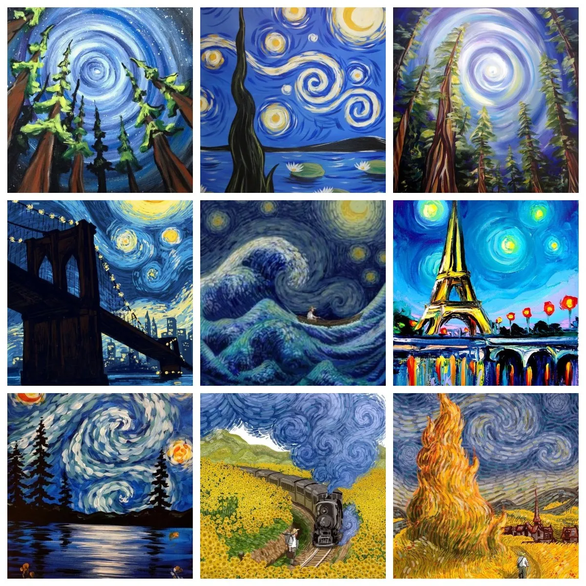 Алмазная Живопись Ван Гога, звездное небо, башня, мост, пейзаж для взрослых, абстрактная вышивка ручной работы, мозаика сделай сам, украшение для дома