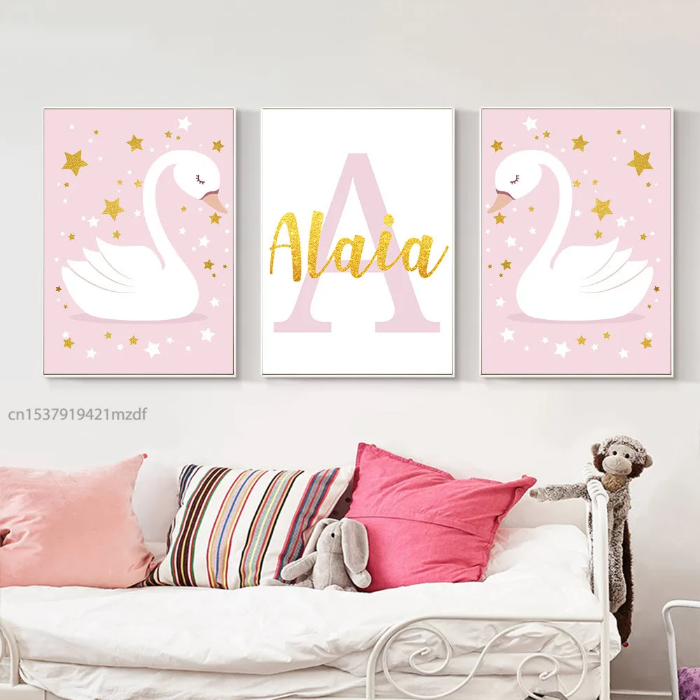 Картина на холсте с лебедями для детской комнаты, настенный художес...