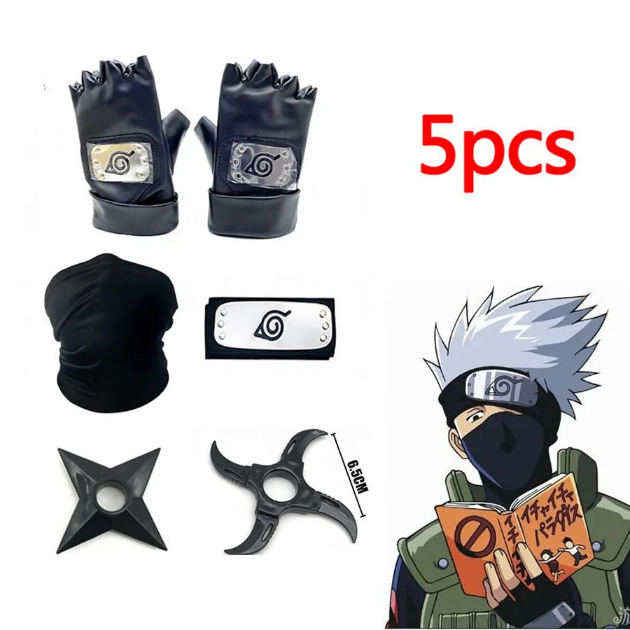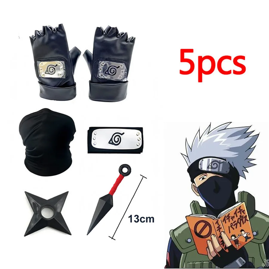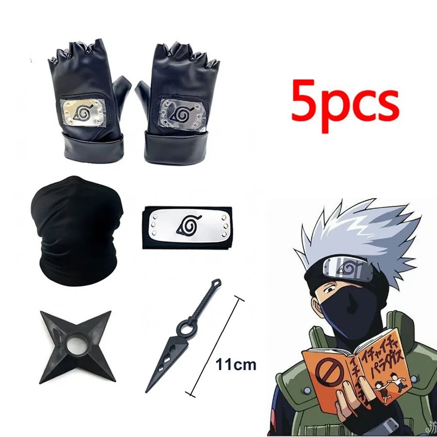 5 шт. аксессуары для косплея искусственного аниме Kakashi Kunai перчатки маска ниндзя головная повязка Учиха варежки экшн-фигурки вещи детские игрушки