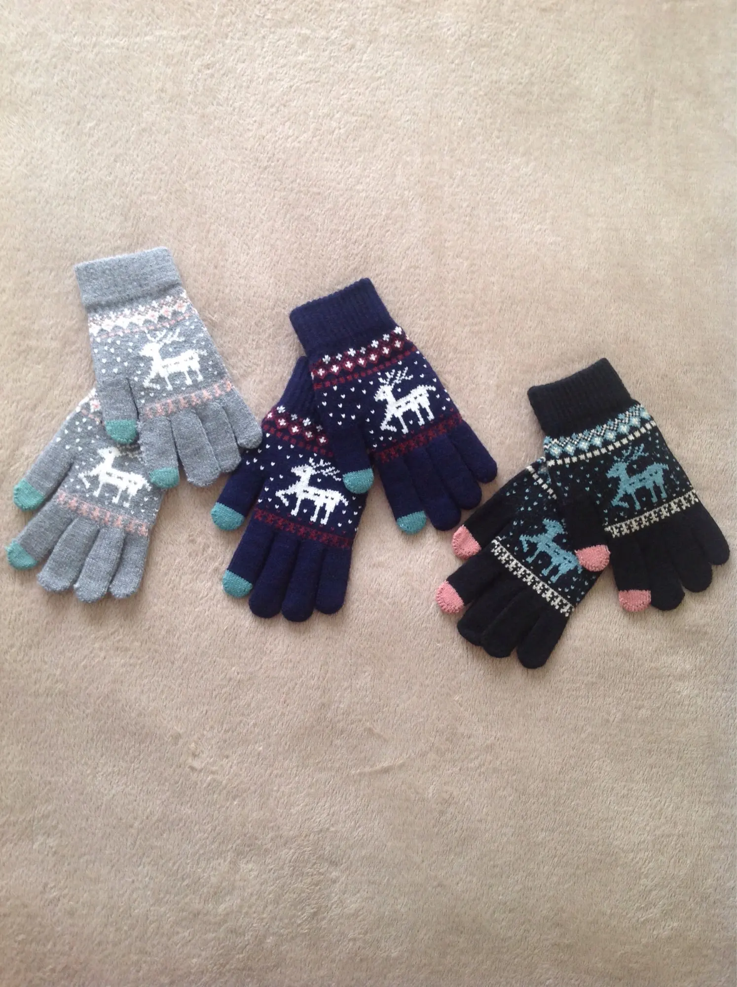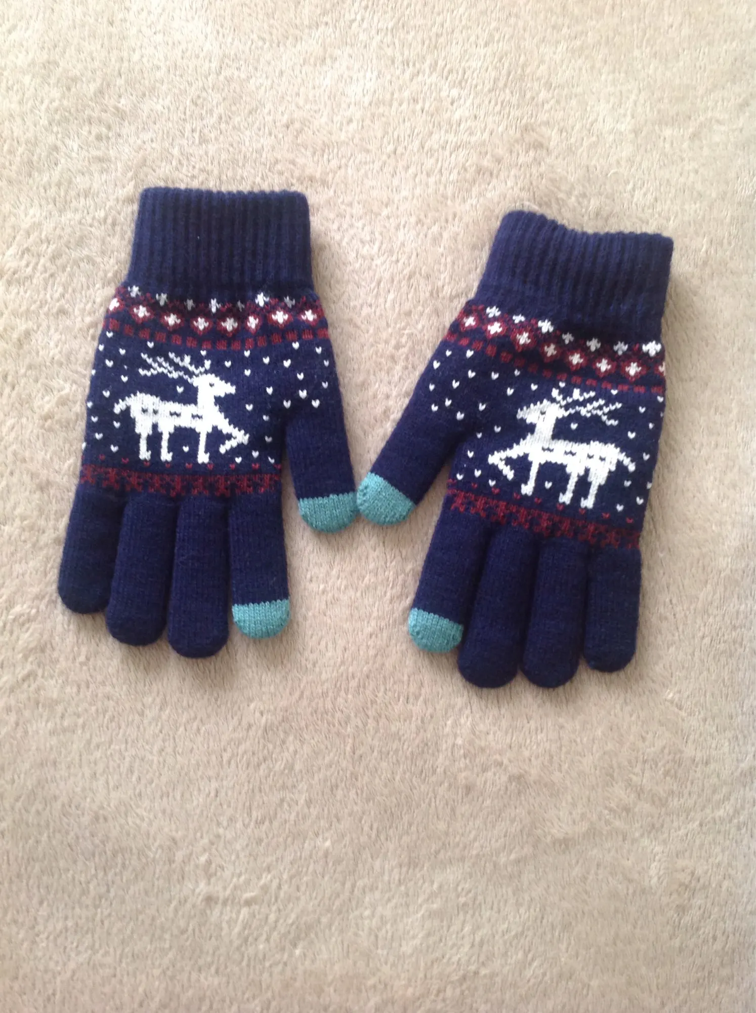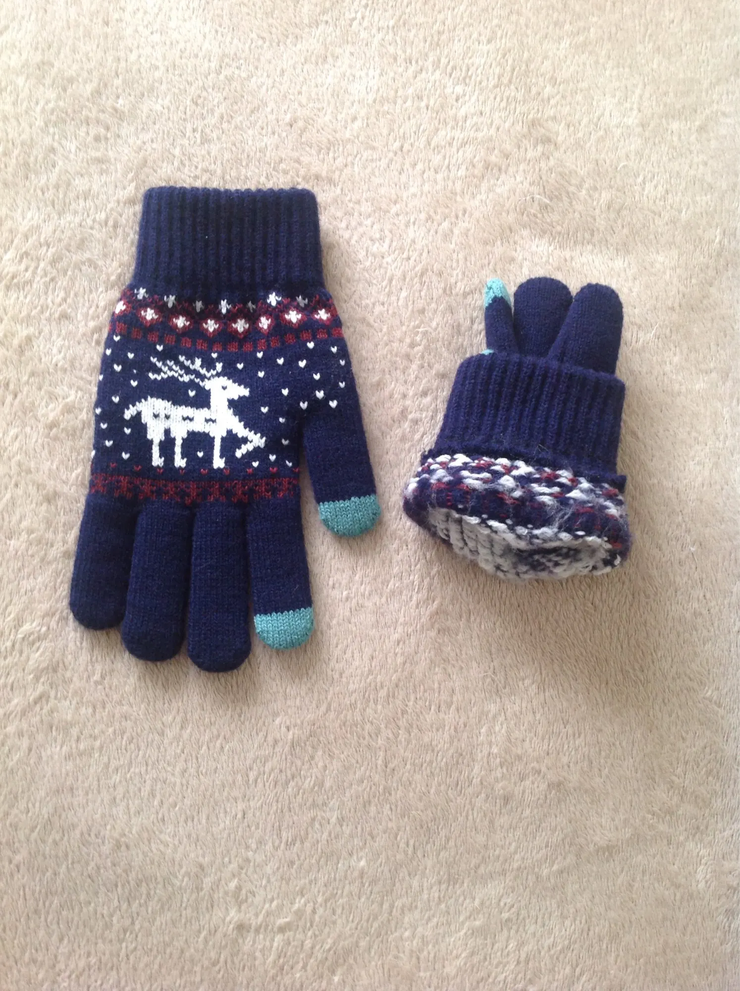 Перчатки с принтом рождественского оленя, трикотажные перчатки для ...