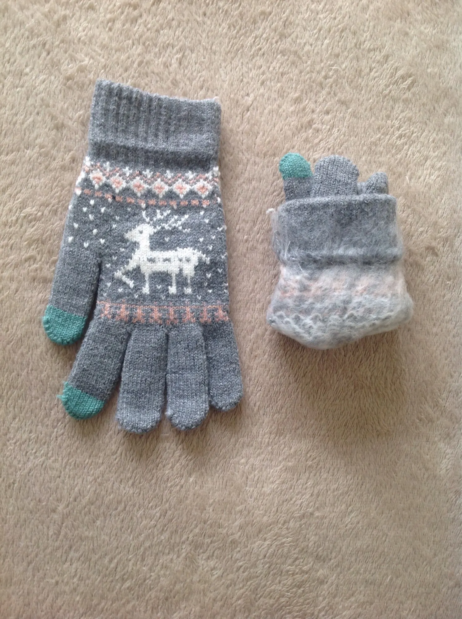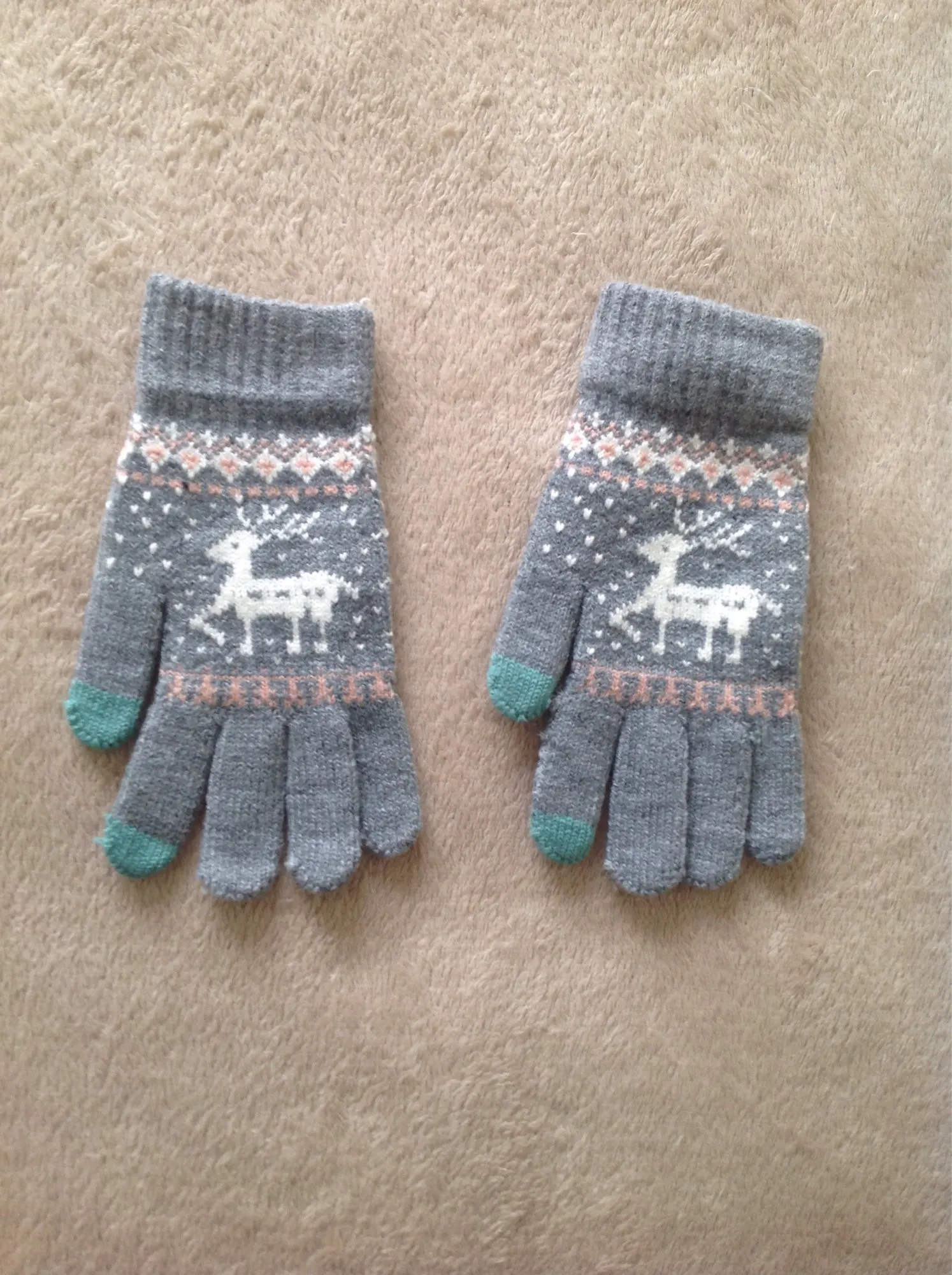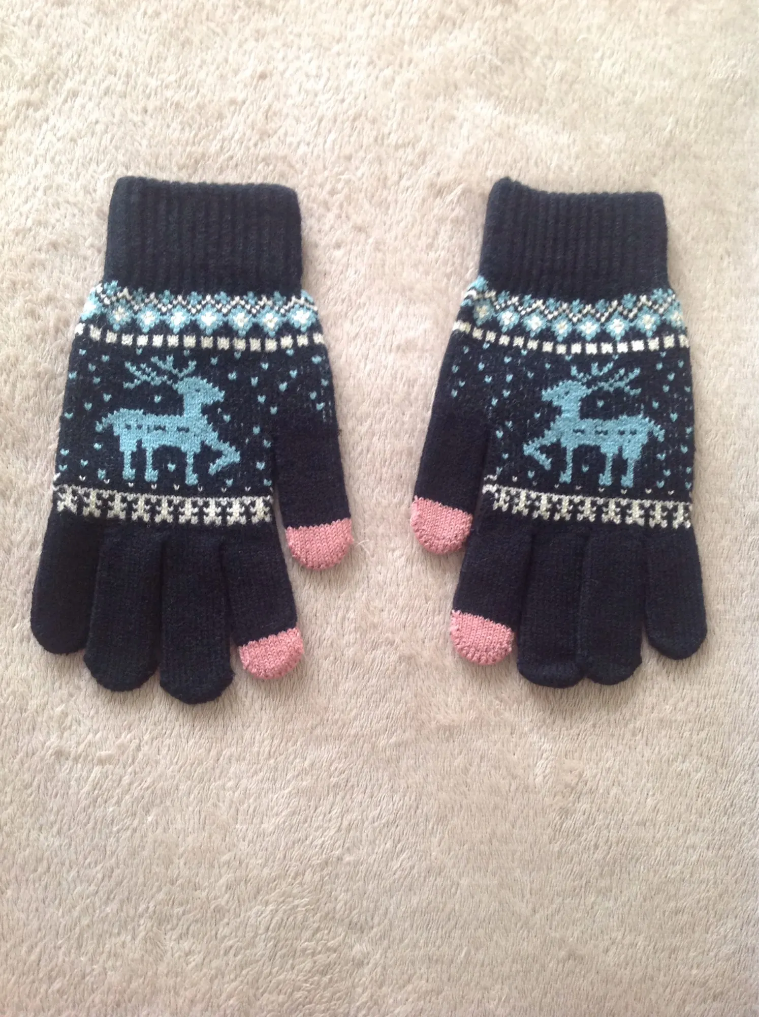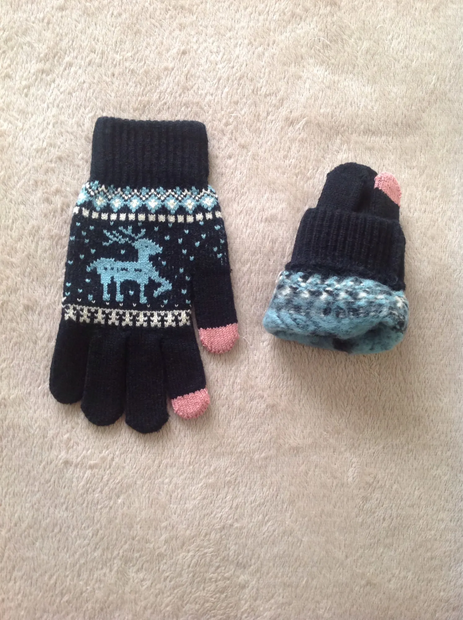 Перчатки с принтом рождественского оленя, трикотажные перчатки для ...