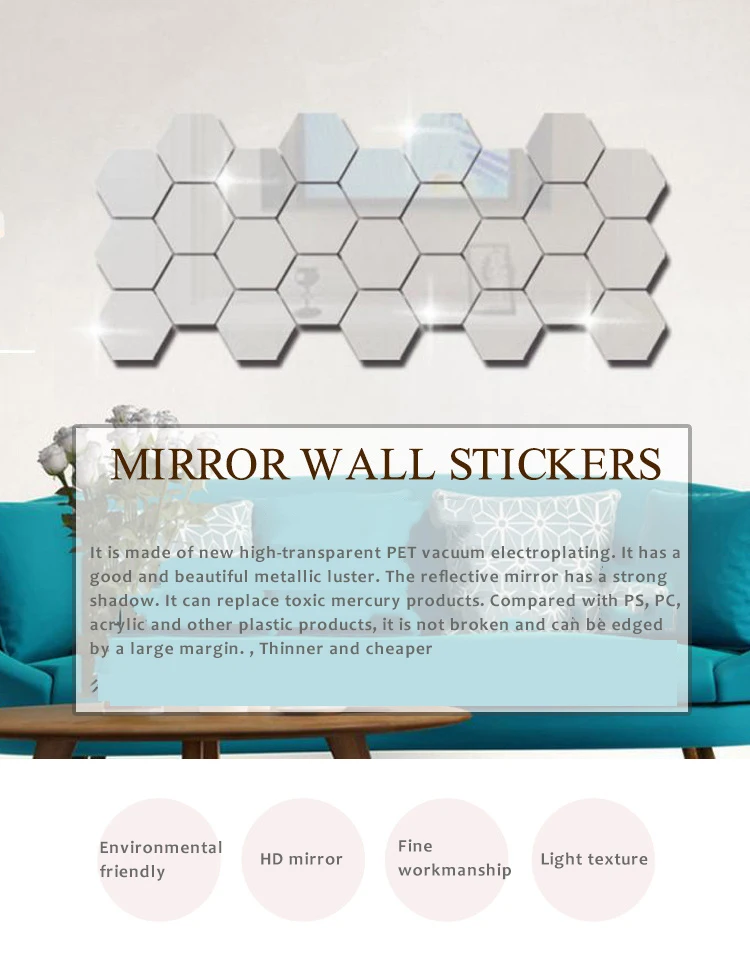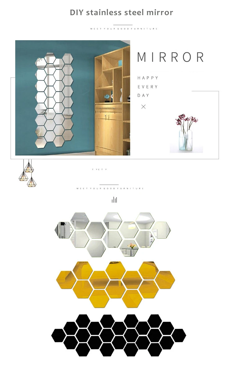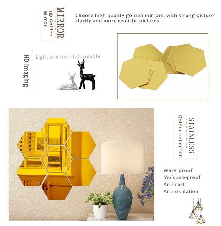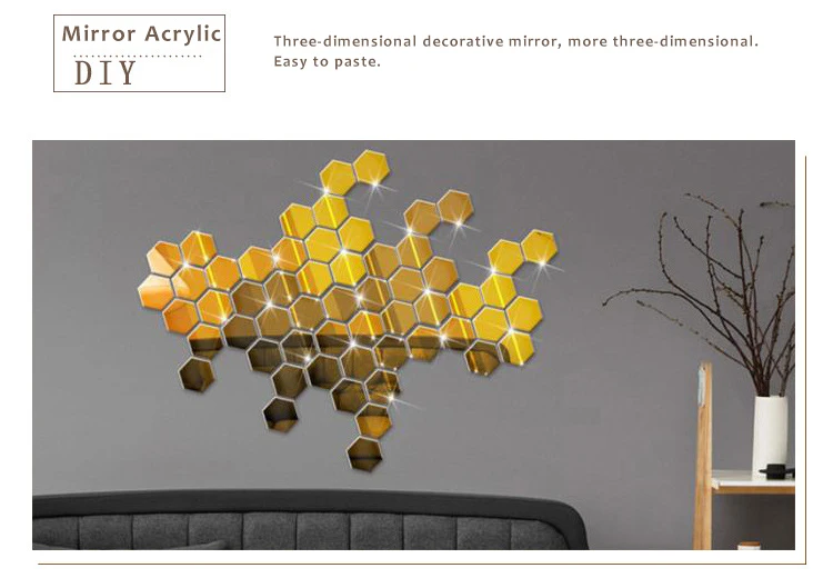 Шестигранная зеркальная самоклеящаяся бумажная Зеркальная Наклейка на стену украшение домашнее Сращивание полноразмерное зеркало