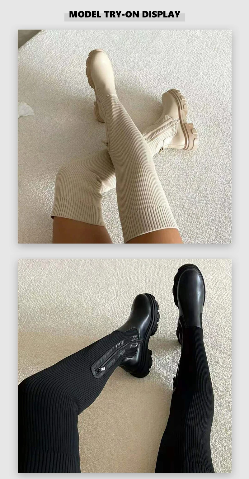 Женские сапоги до колена, осенние женские эластичные вязаные высокие сапоги из искусственной кожи, женские зимние сапоги на платформе, на молнии, большие размеры, 2022