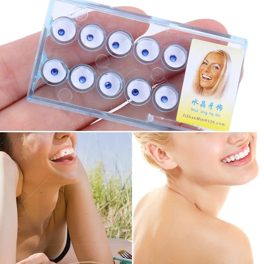 Посылка включает в себя: 10 шт/коробка Кристальные зубные украшения