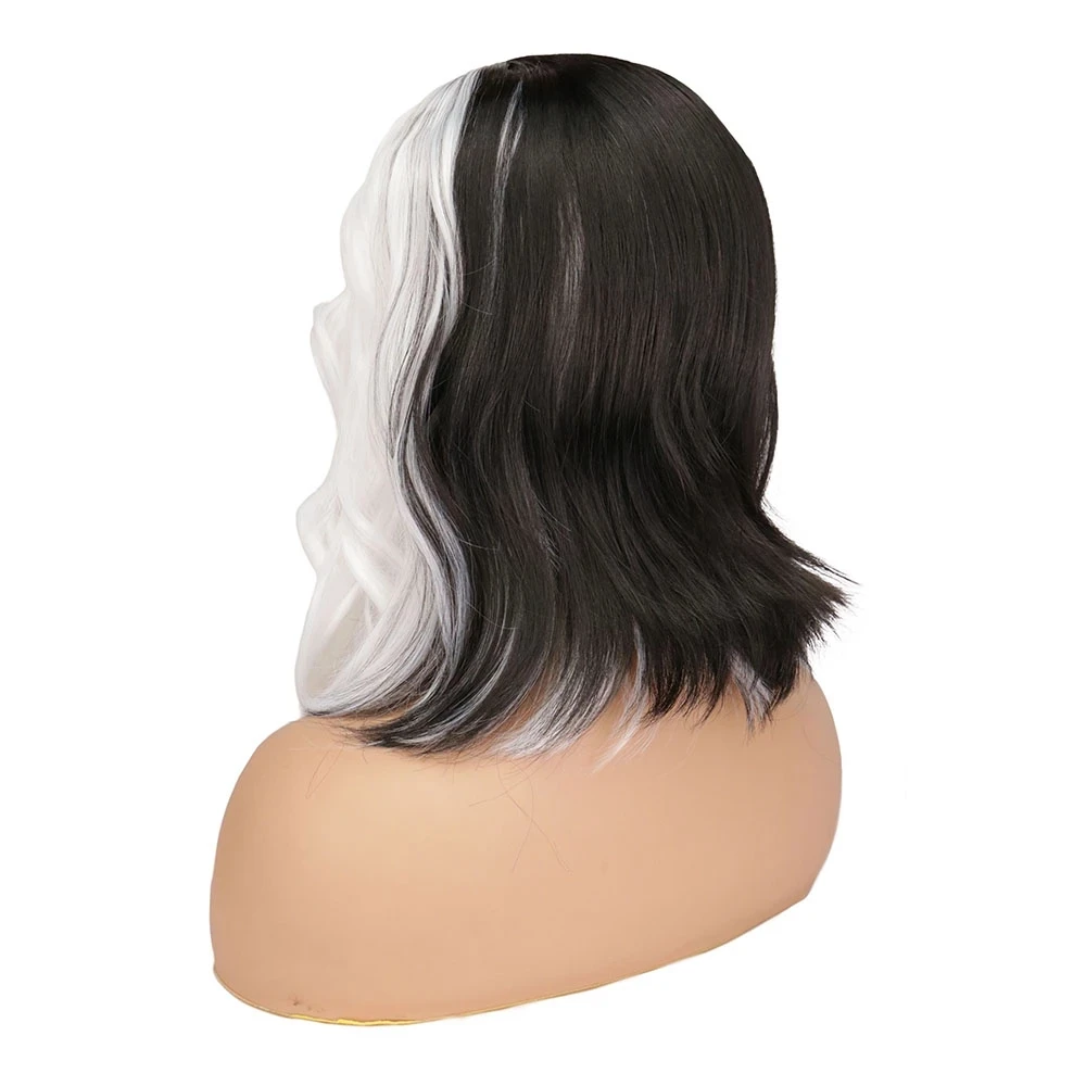 Парик для косплея Cruella De Vil Kuila, черные, белые короткие вьющиеся волосы для костюмированной вечерние НКИ на Хэллоуин, парики для изготовления париков данганронпа