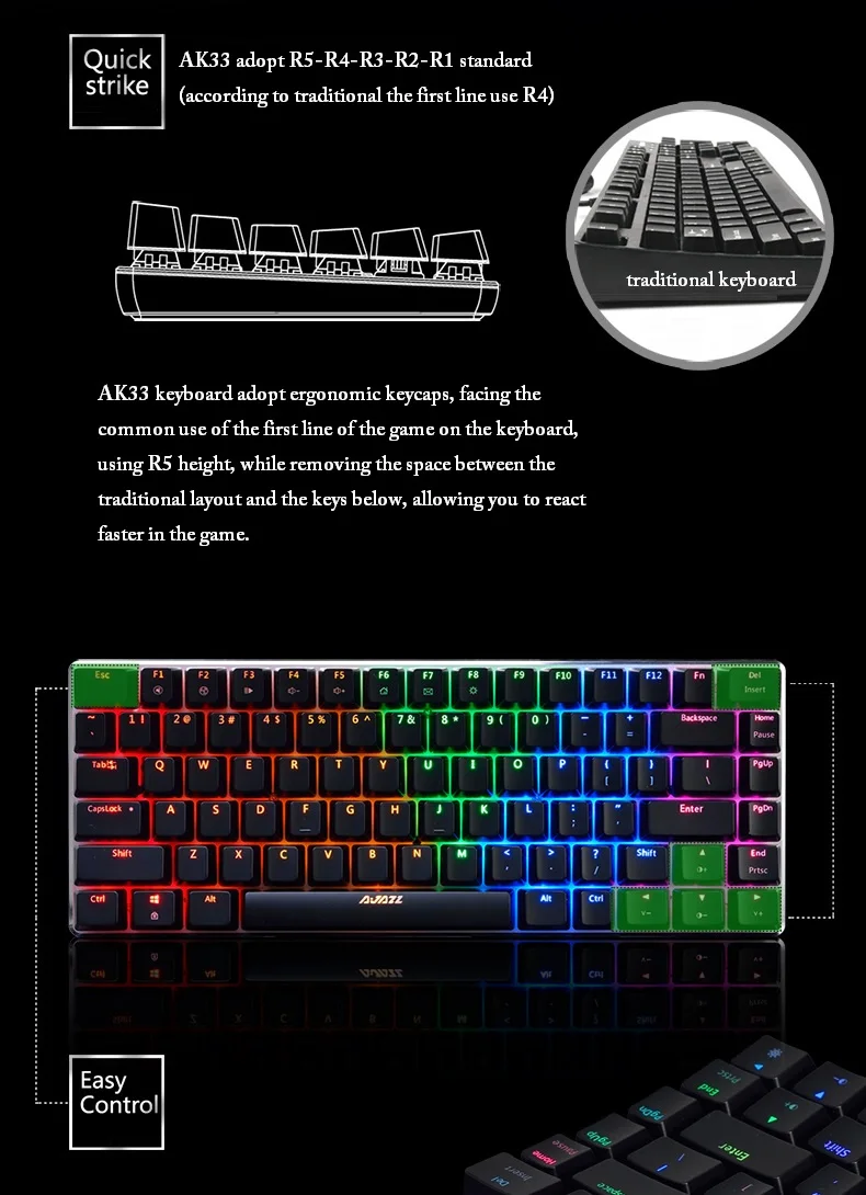 AK33 не имеет подсветки/синей подсветки/белой подсветки/RGB подсветки, пожалуйста, убедитесь, какое видение вам нужно: