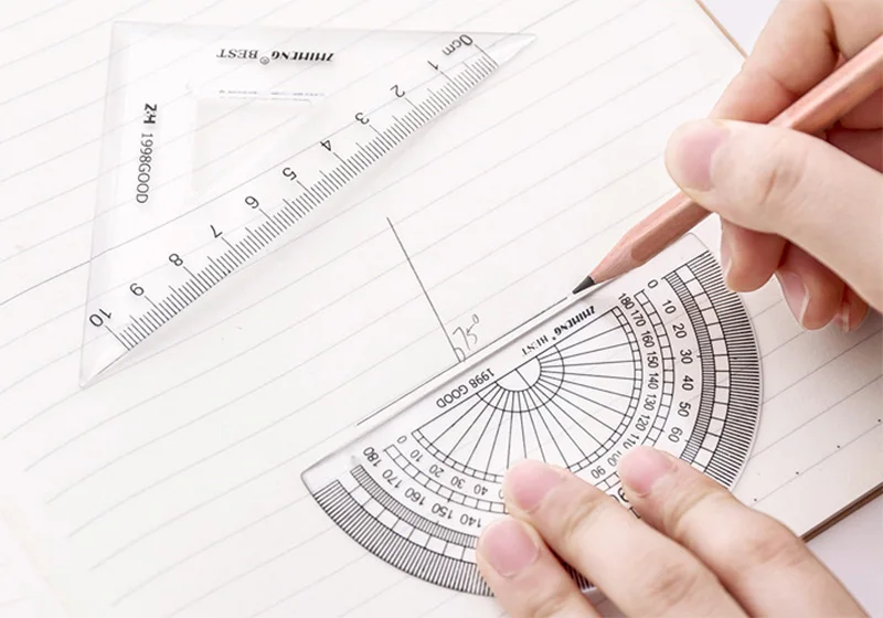 Математический геометрический инструмент, пластиковая прозрачная фотография, включает треугольную линейку с прямолинейкой, транспортир, комплект для фототехники