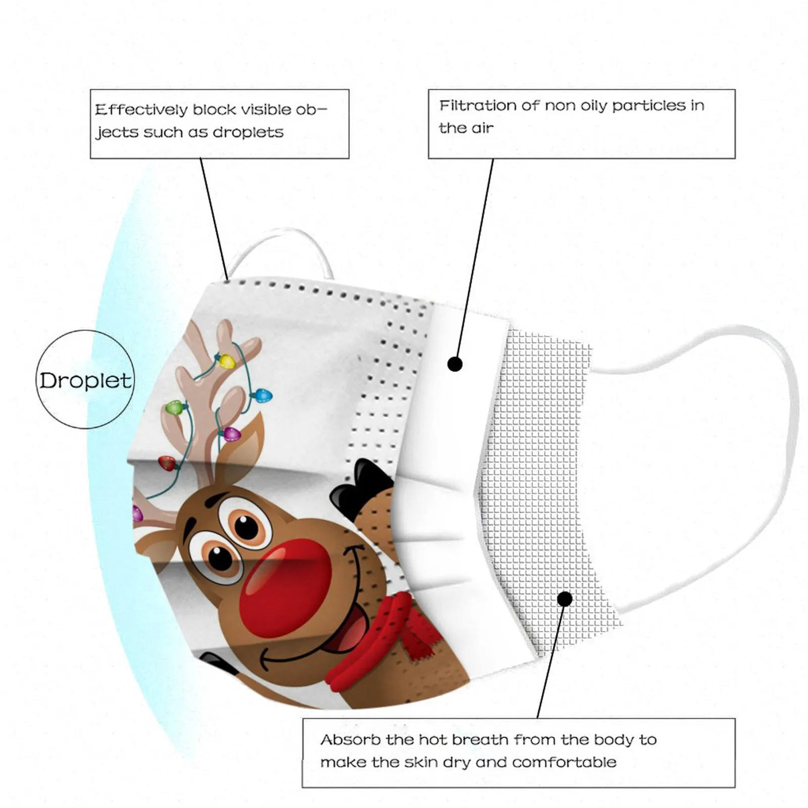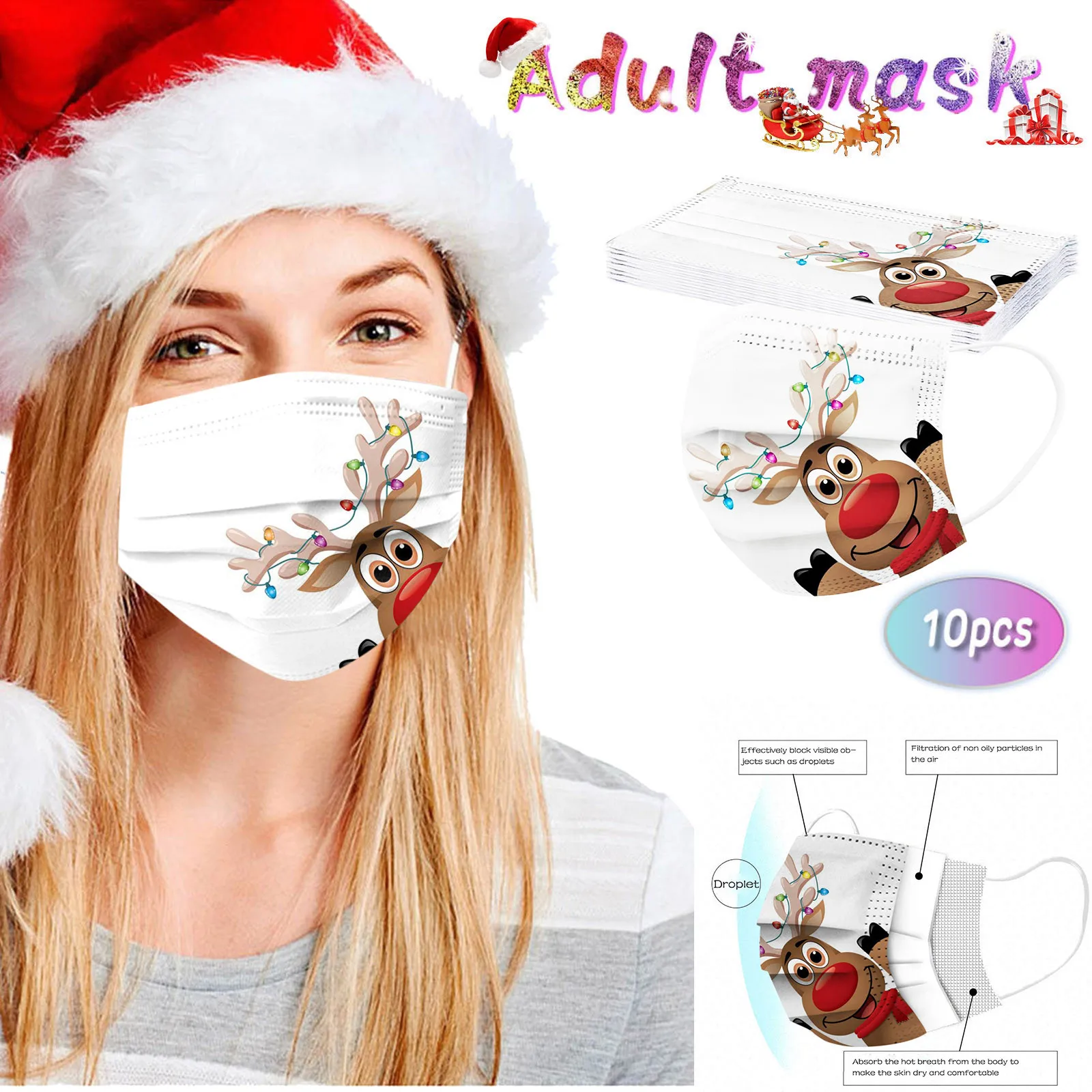 10 шт., маска для лица с оленем, рождественские украшения для взрослых, одноразовая маска, маски-кариллы, Desechables, Хэллоуин, косплей, с новым годом 2021