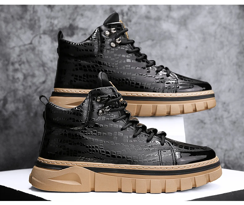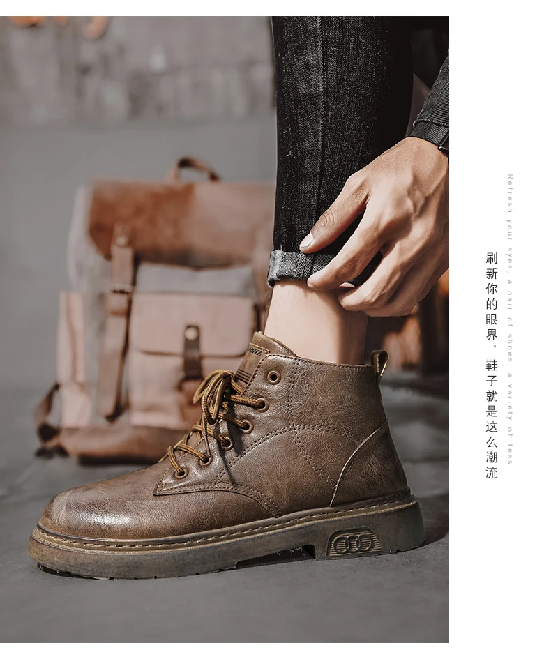 Damyuanкожаные ботинки с высоким берцем; Мужские удобные кроссовки; Мужские Нескользящие повседневные ботинки для улицы; Размер 44; Рабочие ботинки в байкерском стиле
