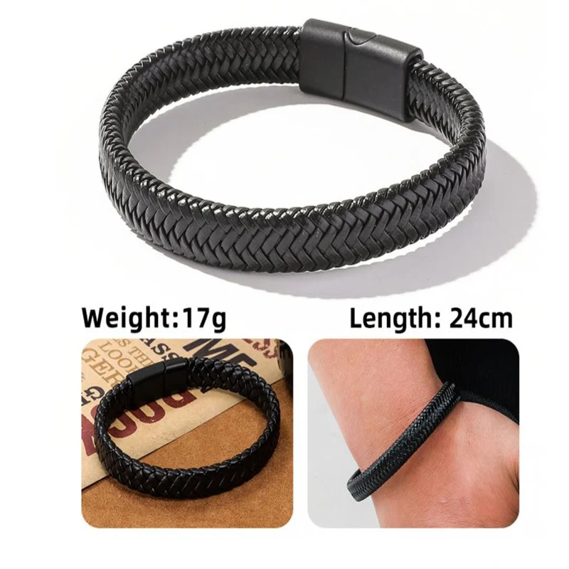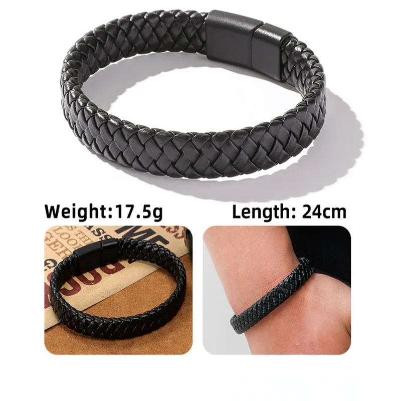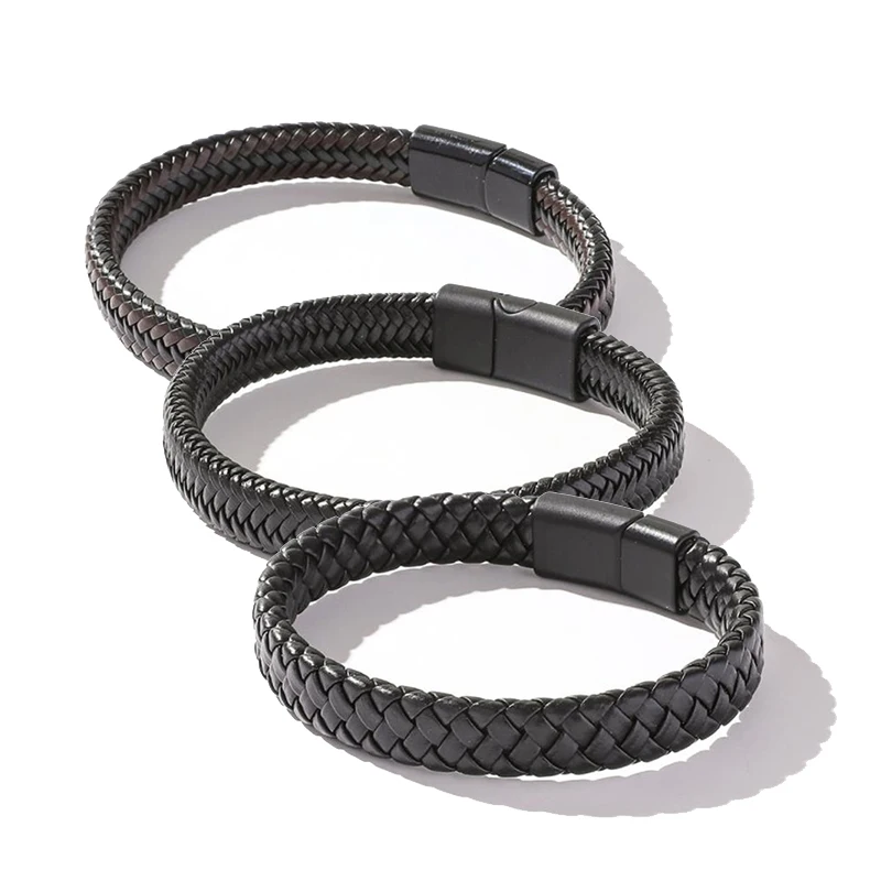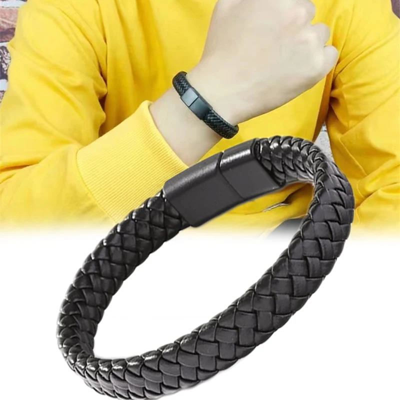 Мужской плетеный кожаный браслет ручной работы, черный магнитный браслет с металлической пряжкой, браслет для мужчин, модные ювелирные изделия