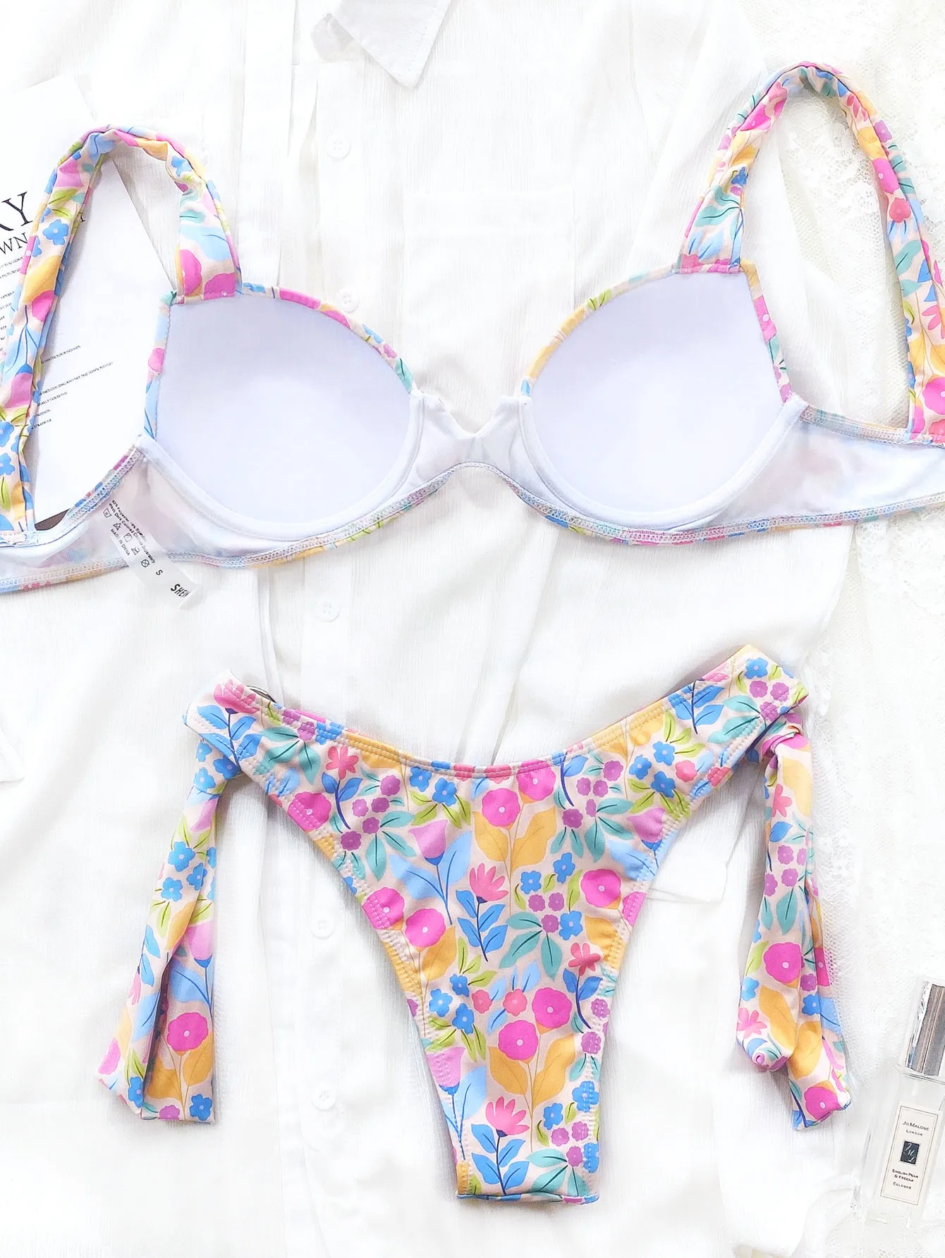 Женский раздельный купальник с бюстгальтером пуш-ап и принтом
