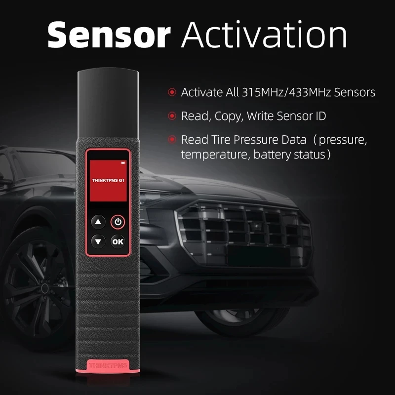 THINKCAR Thinktpms G1 может активировать все датчики давления в шинах 315 МГц/433 МГц, а также считывать, копировать, записывать идентификаторы датчиков и считывать данные о давлении в шинах (давление, температура, состояние батареи)