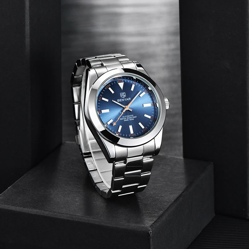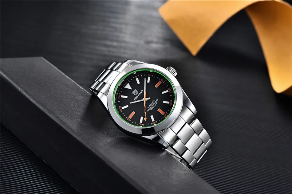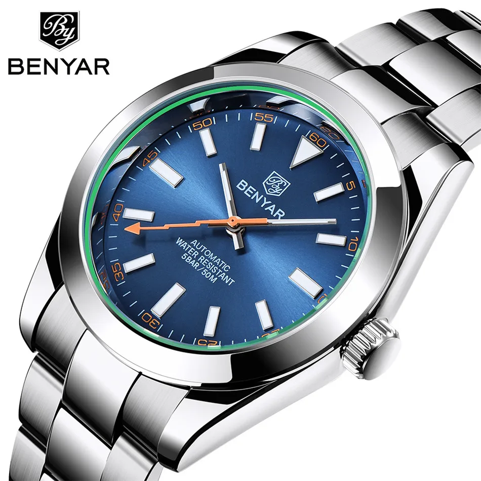 Мужские водонепроницаемые автоматические механические наручные часы BENYAR, дизайнерские модные брендовые часы из нержавеющей стали, 2020