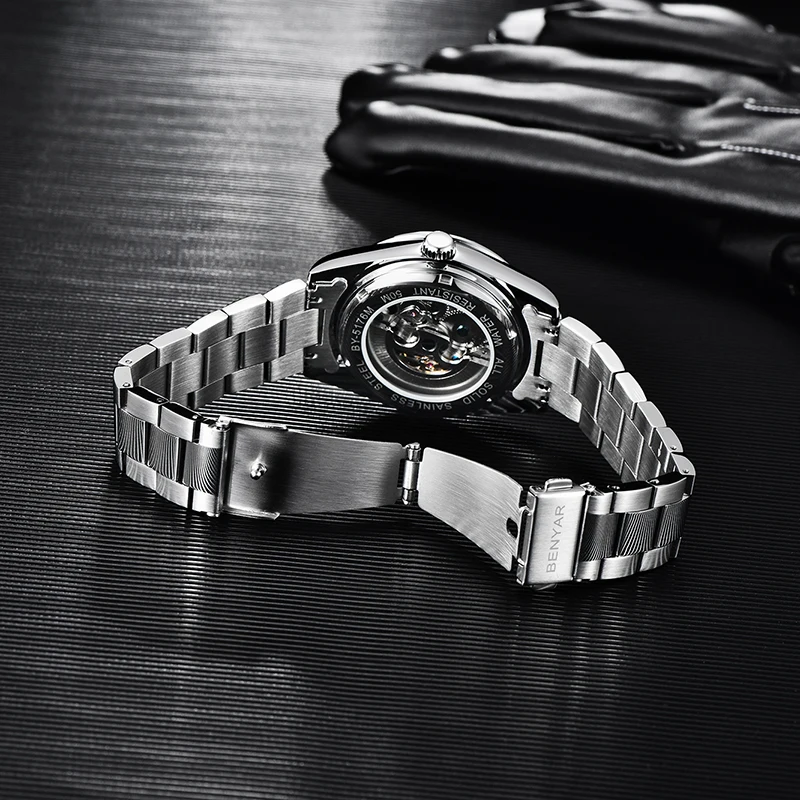 Мужские механические часы из нержавеющей стали BENYAR, повседневные...