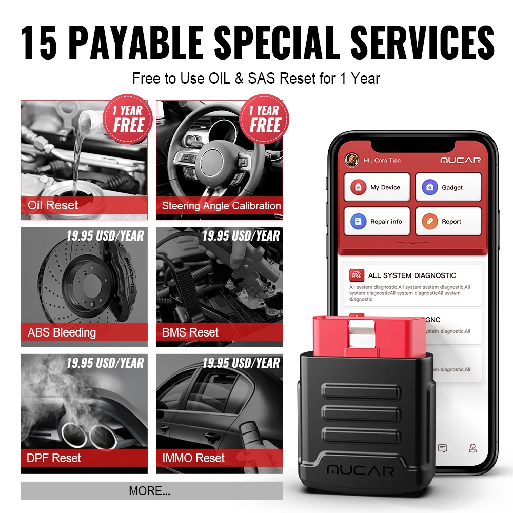 Автоматический диагностический сканер полной системы Mucar BT200 с бесплатным маслом SAS Сброс на весь срок службы Обновление Wi-Fi Автомобильный диагностический сканер для всех автомобилей, для iOS и Android