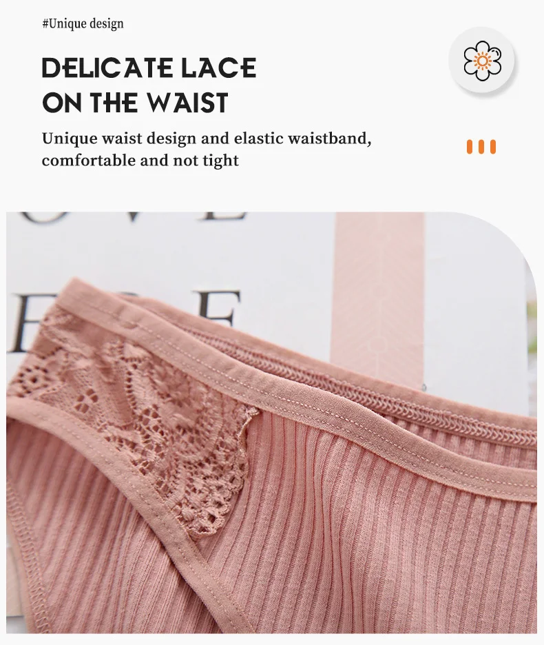 Трусы женские хлопковые кружевные, с высокой талией, дышащие