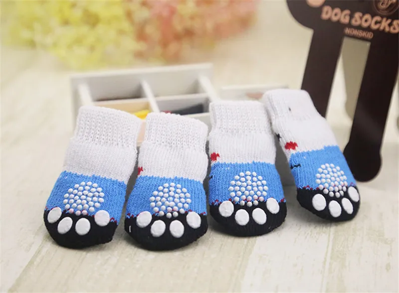 4 шт.компл. носки для домашних животных, Нескользящие вязаные ботин...