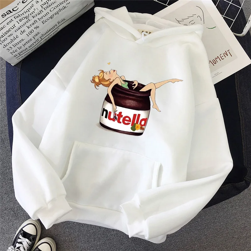 Свободные женские пуловеры, Свитшот Nutella, модная трендовая Повседневная зимняя одежда, Женская толстовка с капюшоном и мультяшным рисунком